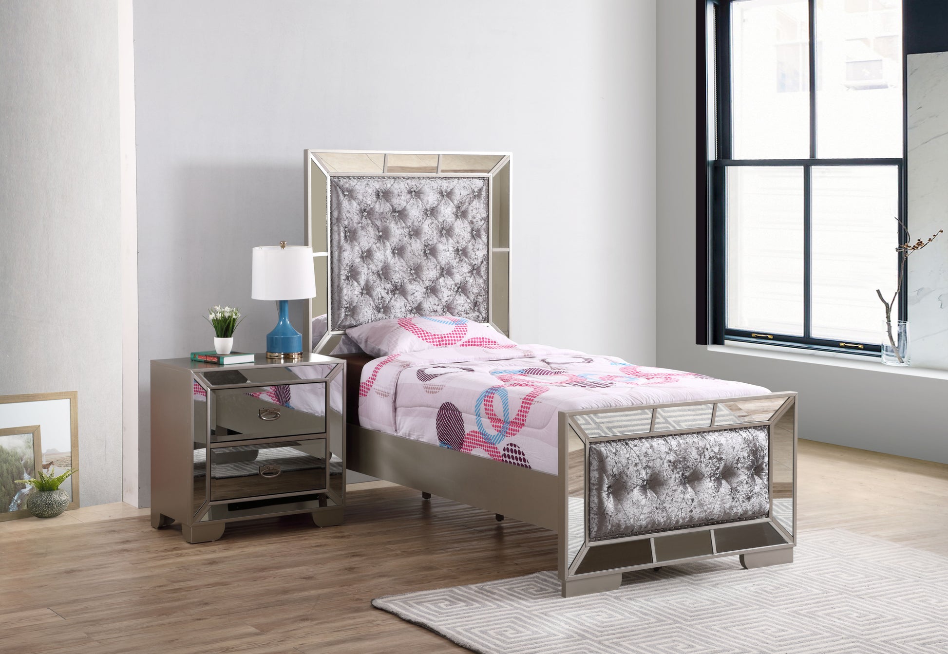 - Modern Design with Mirror Accents: This updated bed features mirror accents for a modern touch.
