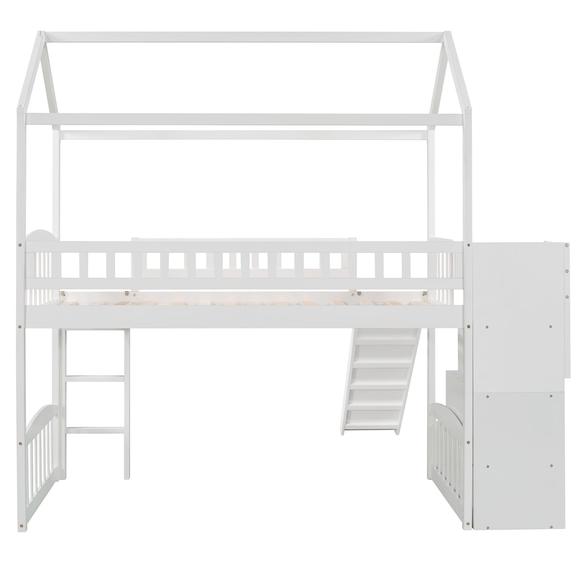 Twin Loft House Bed With 2 Drawers And Slide - White