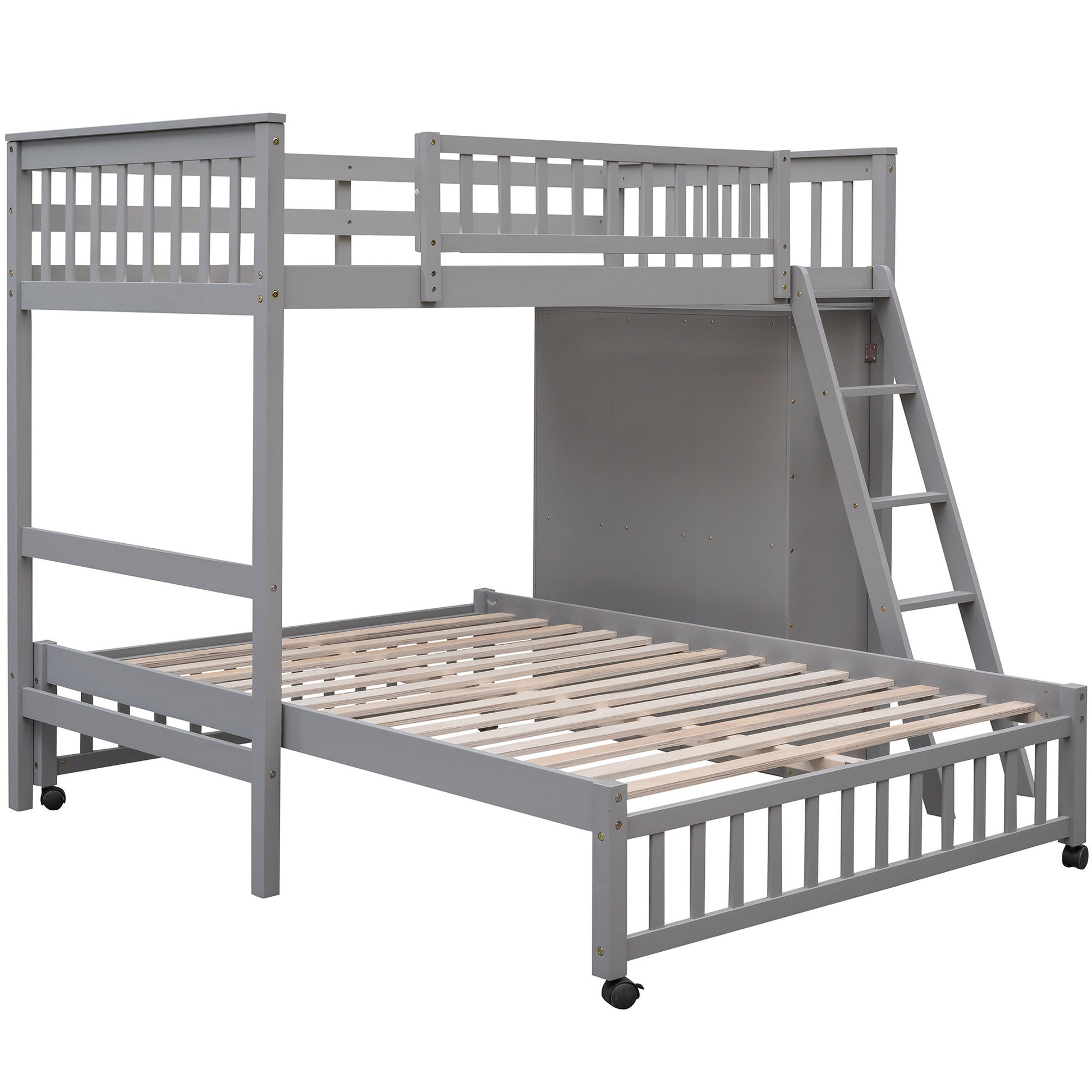 Twin Over Full Bunk Bed With 6 Drawers And Flexible Shelves, Bottom Bed With Wheels - Gray