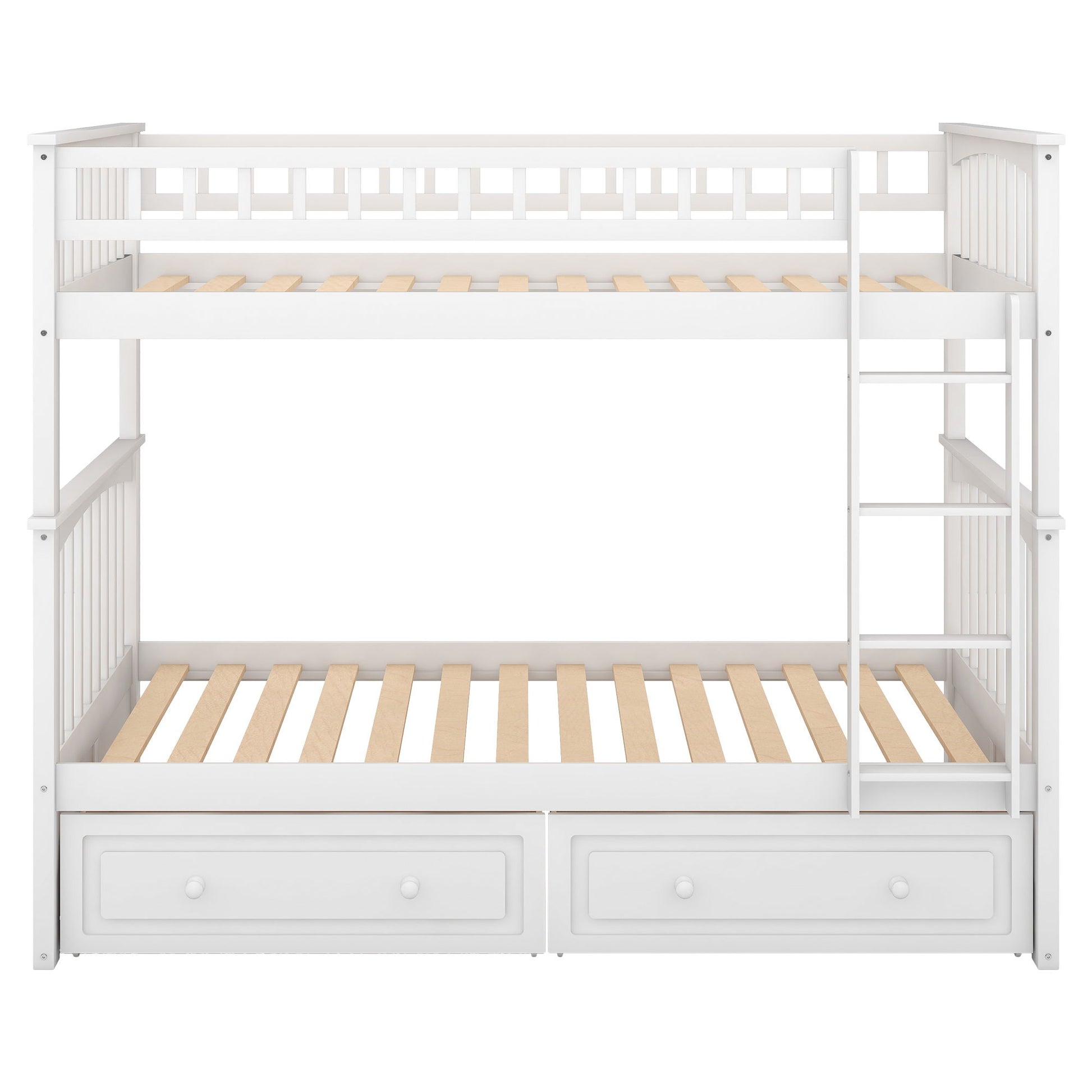 Twin Over Twin Bunk Bed With Drawers, Convertible Beds - White