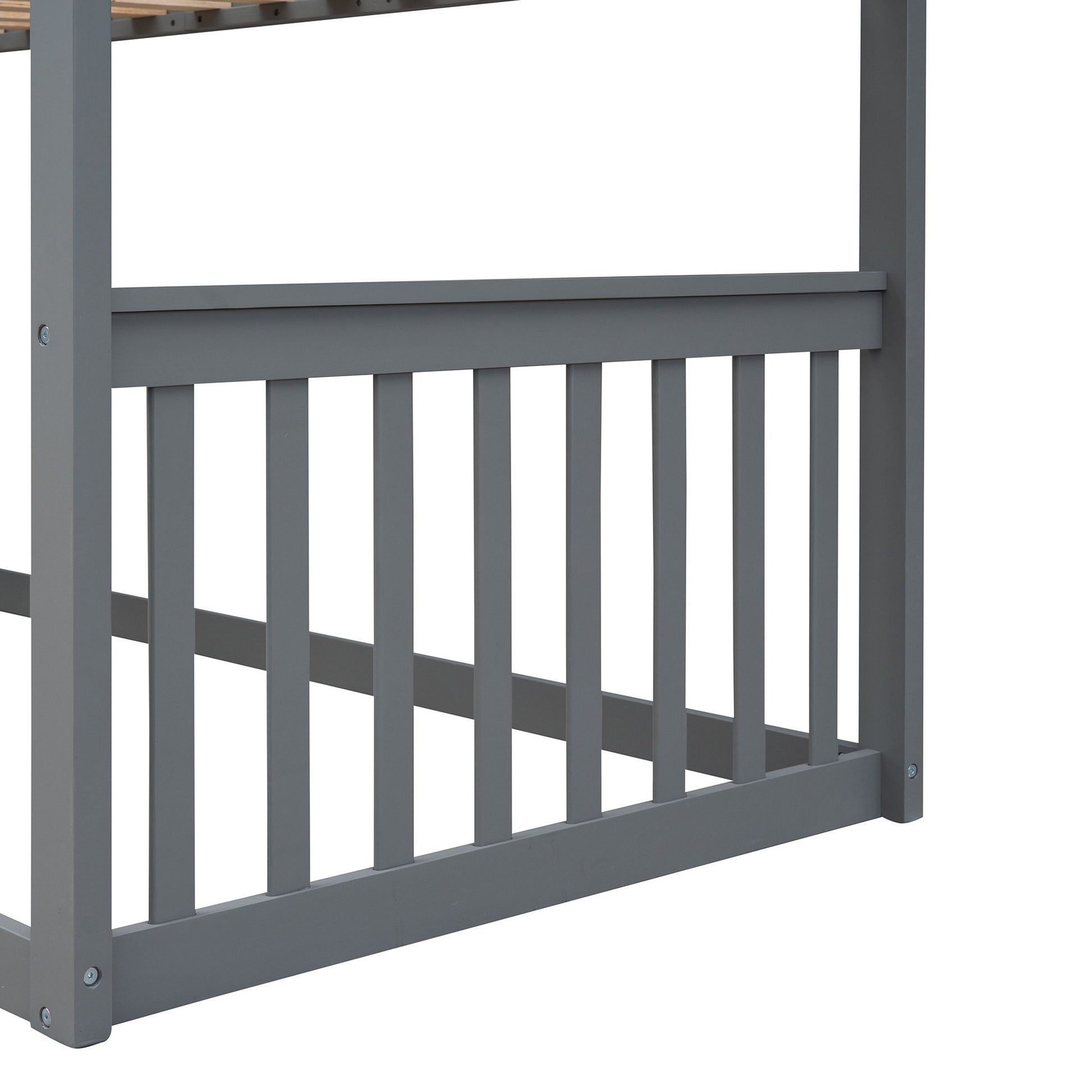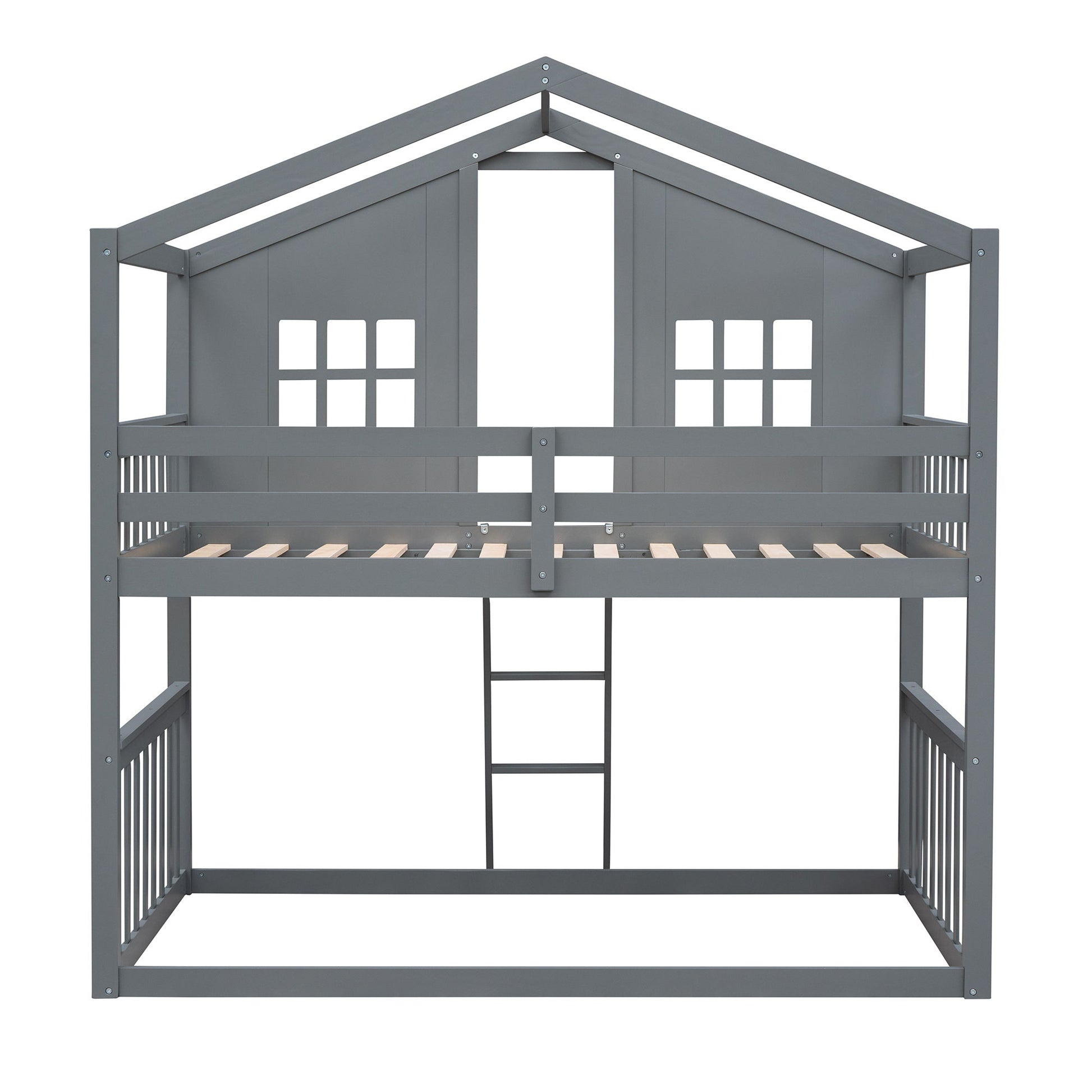 Twin Over Twin House Bunk Bed With Ladder - Gray