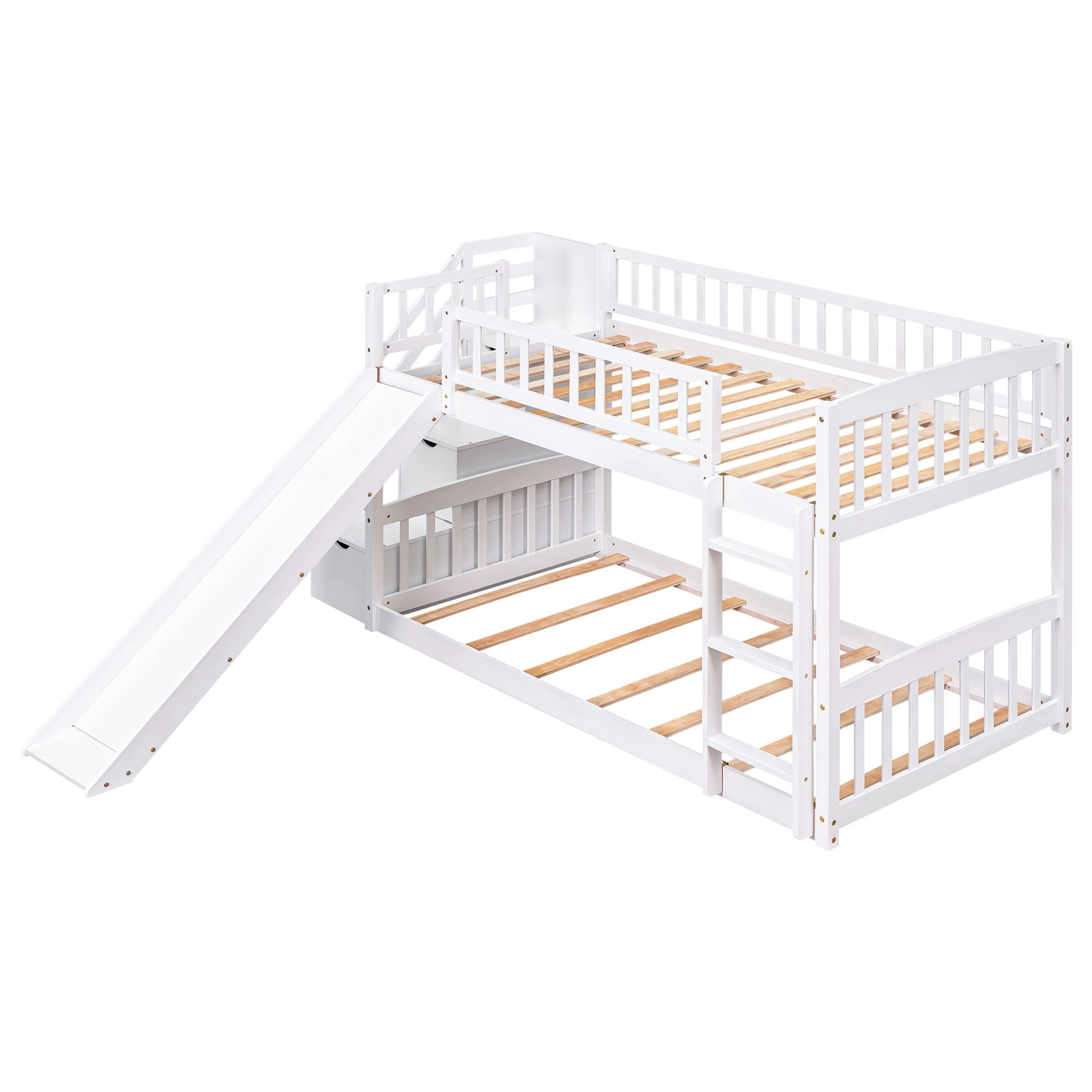 Twin Over Twin Stairway Bunk Bed & Two Drawers And Slide - White