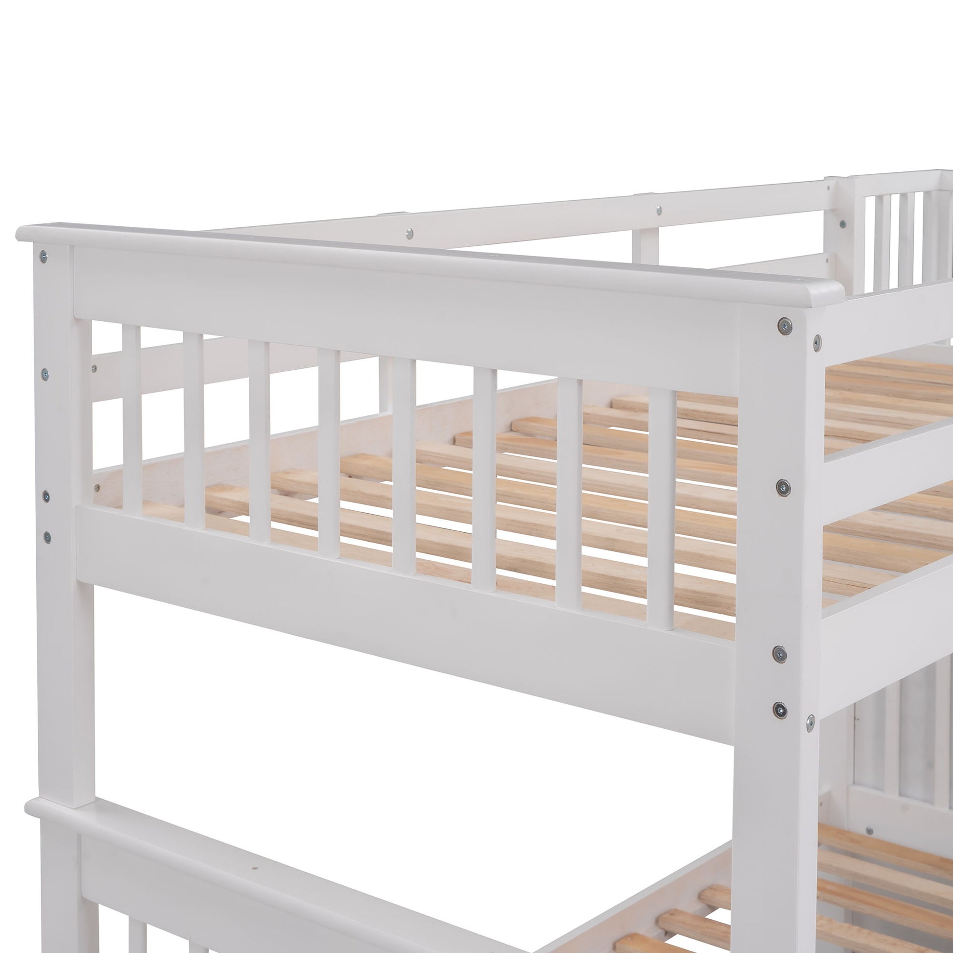 Twin Over Twin Stairway Bunk Bed With Three Drawers For Bedroom - White