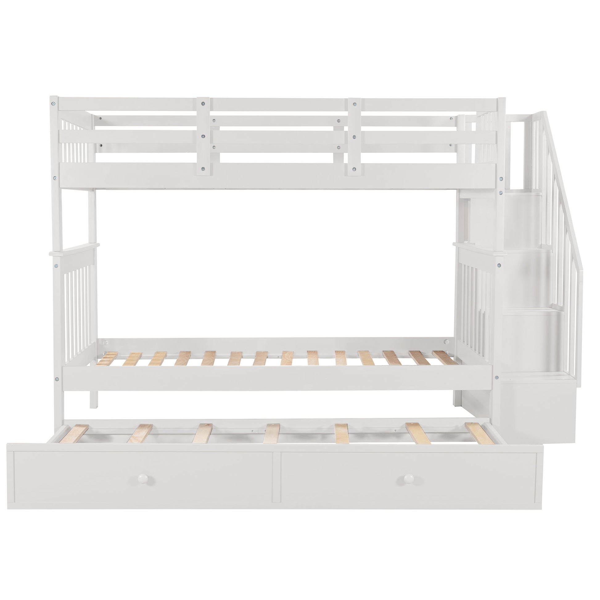 Twin Over Twin Stairway Bunk Bed With Twin Size Trundle For Bedroom - White
