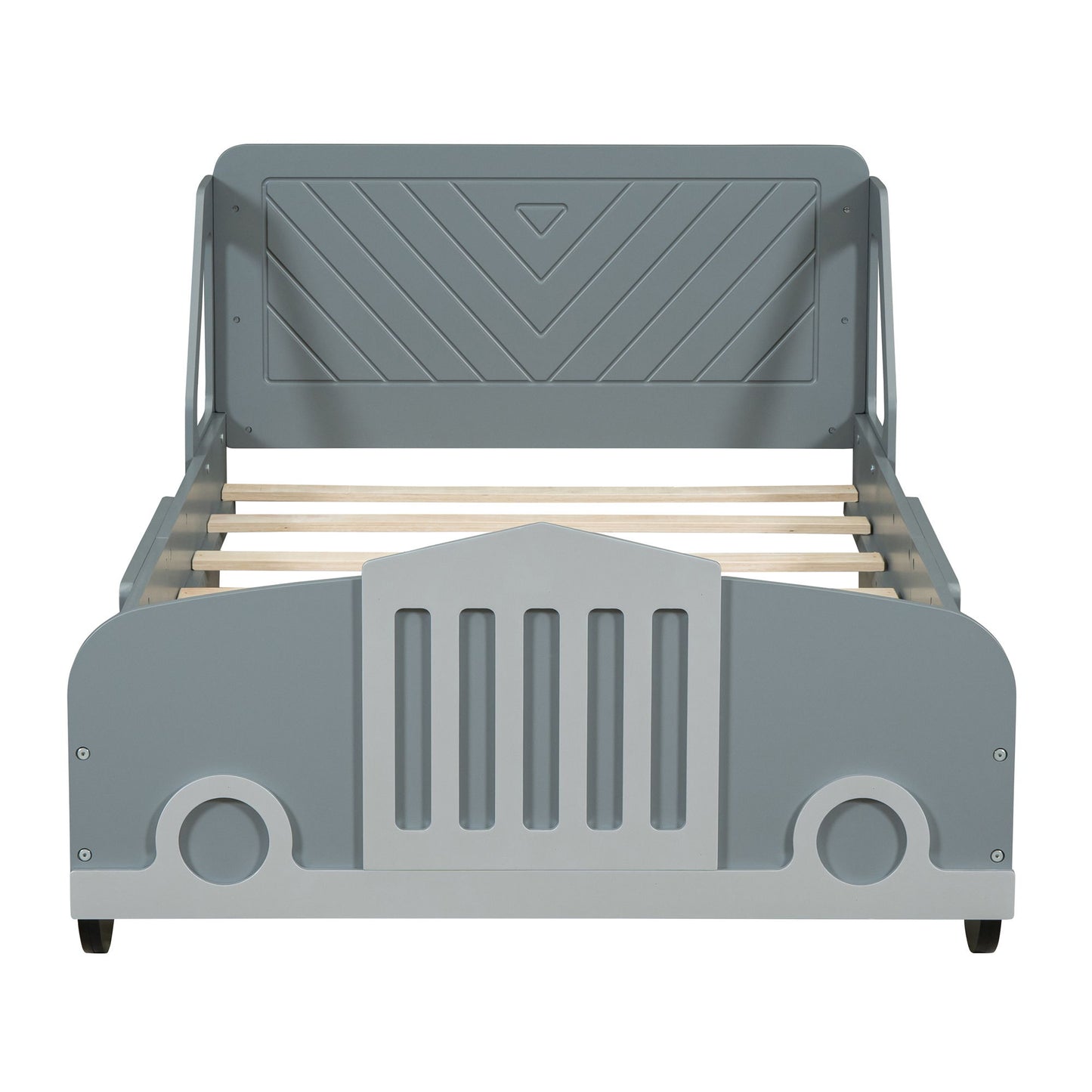 Twin Size Car Shaped Platform Bed With Wheels - Gray