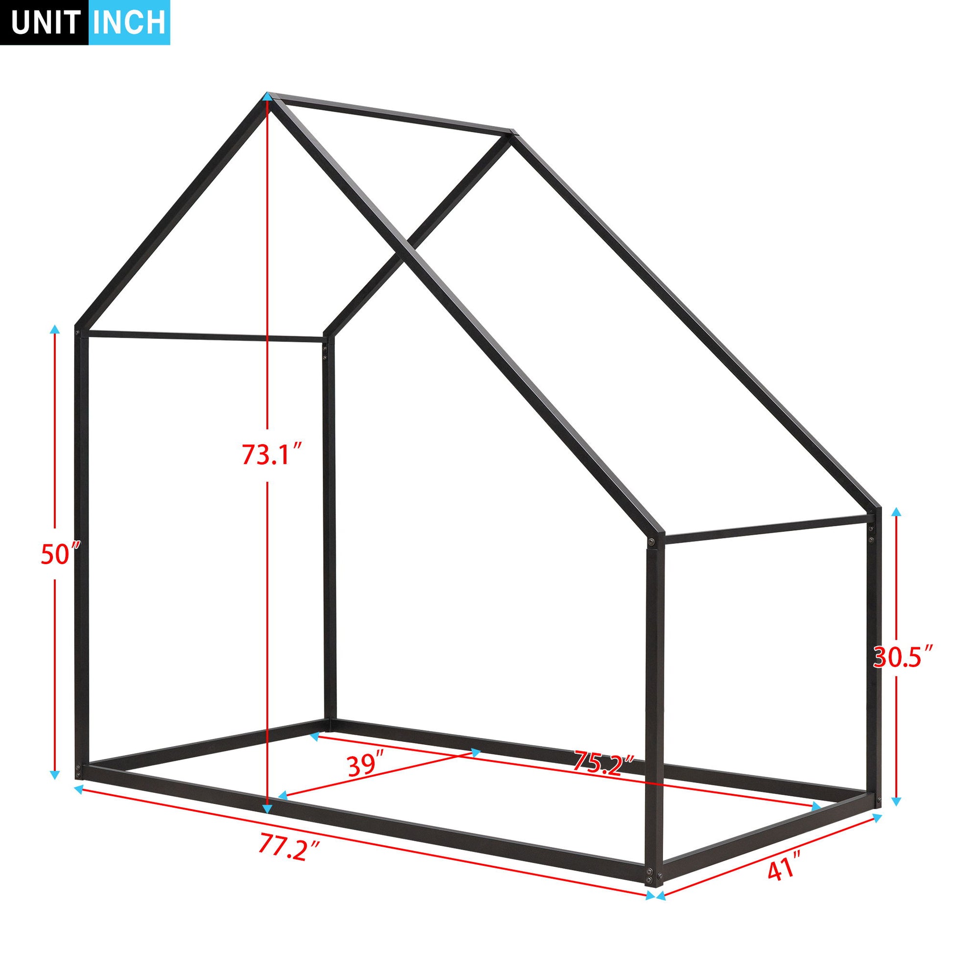 Superior Quality: The twin-size house bed is constructed with a metal frame that enhances stability and durability. Slats are not included, so you'll need to provide box springs or foundations.