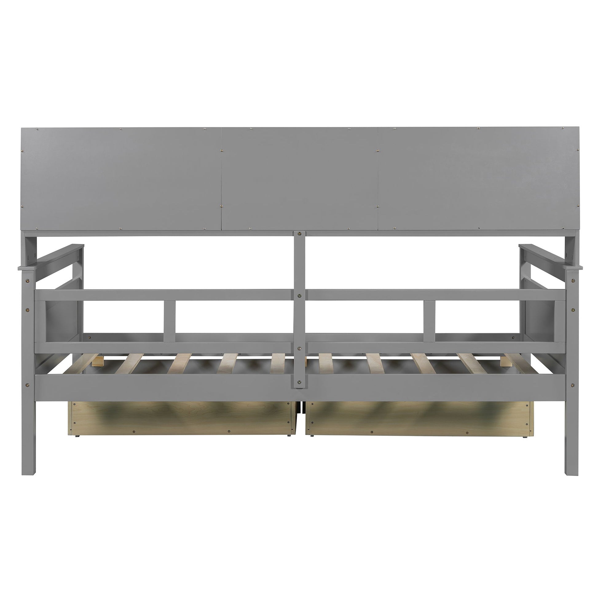 Twin Size Daybed, Slat Support, With Bedside Shelves And 2 Drawers - Gray