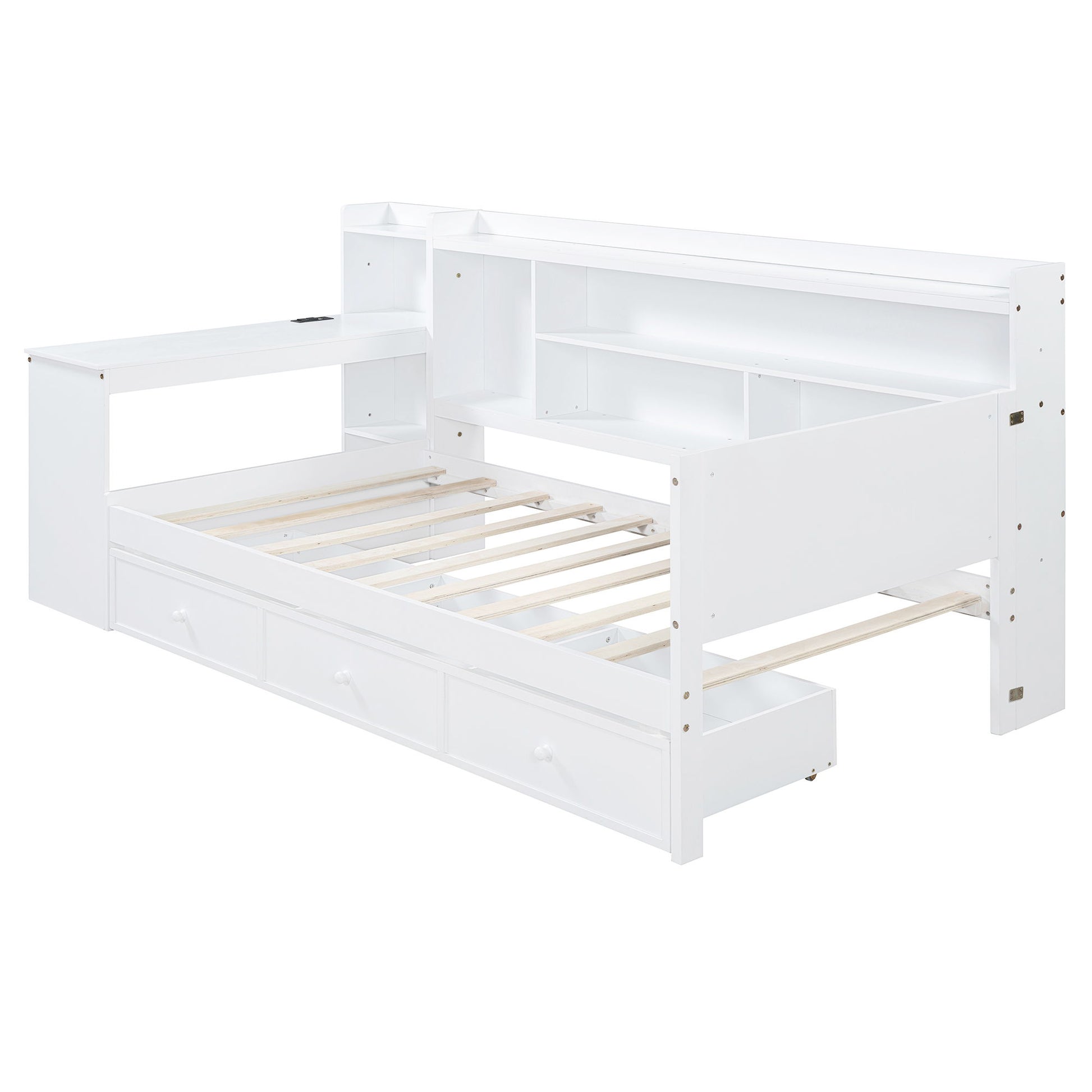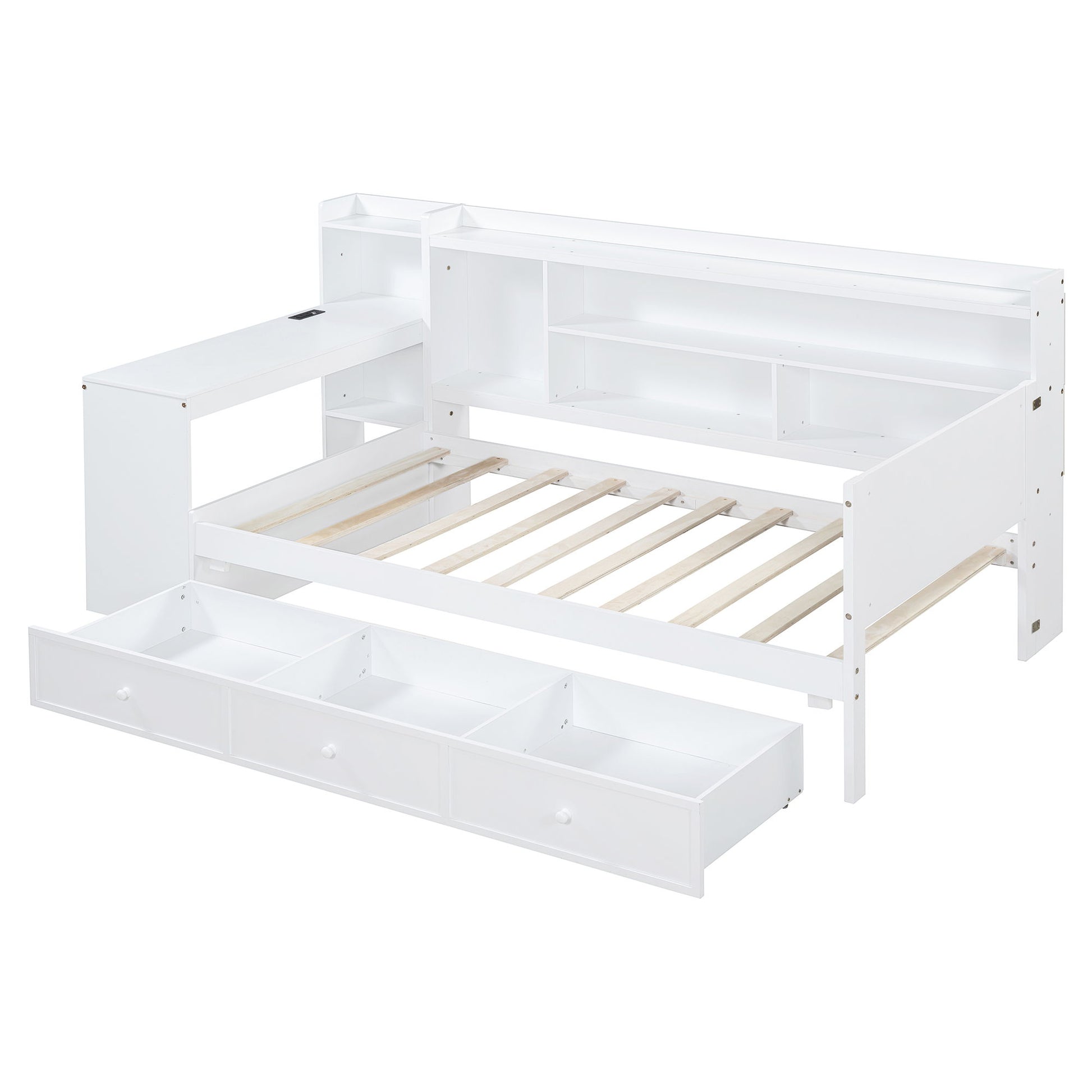 Twin Size Daybed With 3 Drawers USB Ports And Desk - White