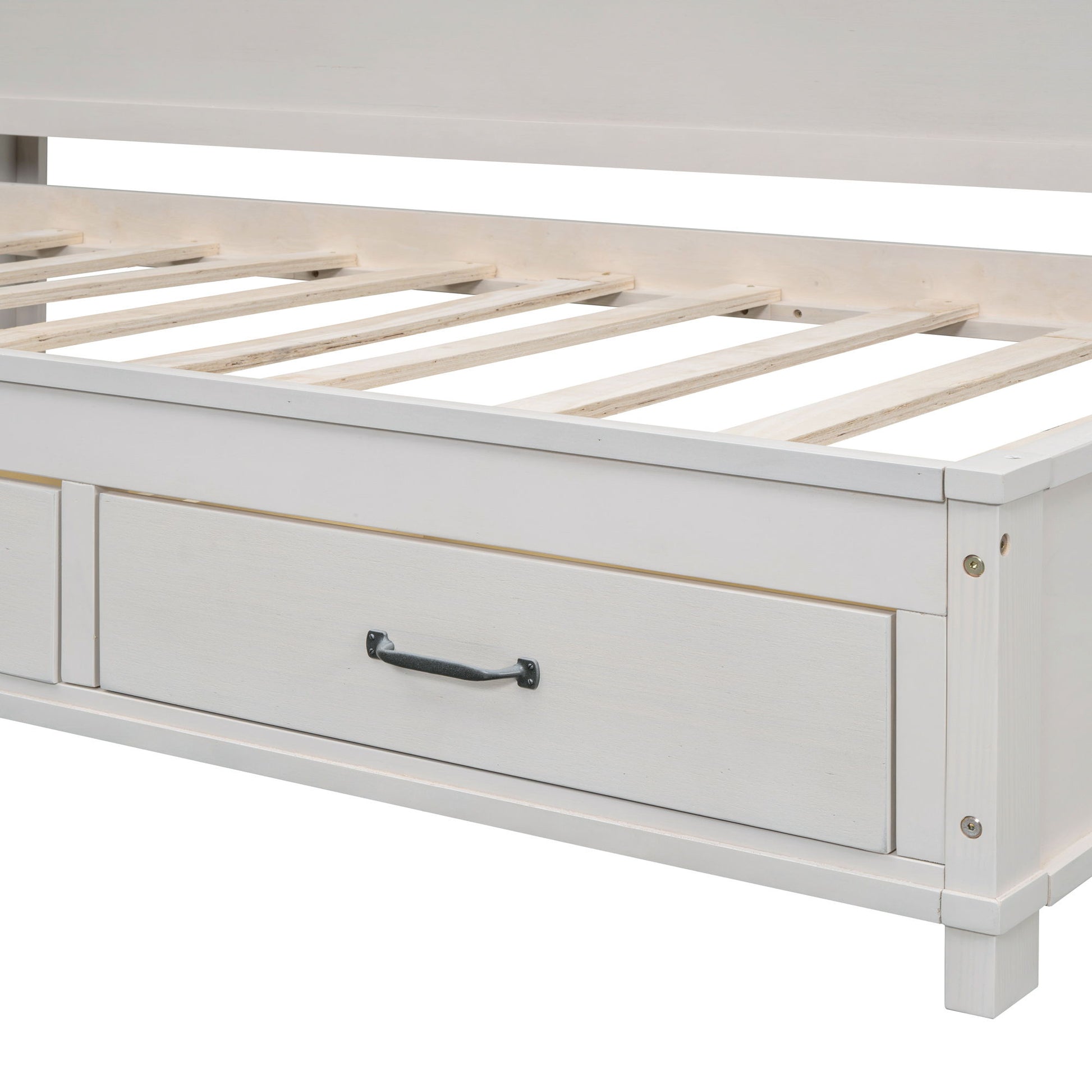 Twin Size Daybed With 3 Storage Drawers, Upper Soft Board, Shelf, And A Set Of Sockets And USB Ports - White