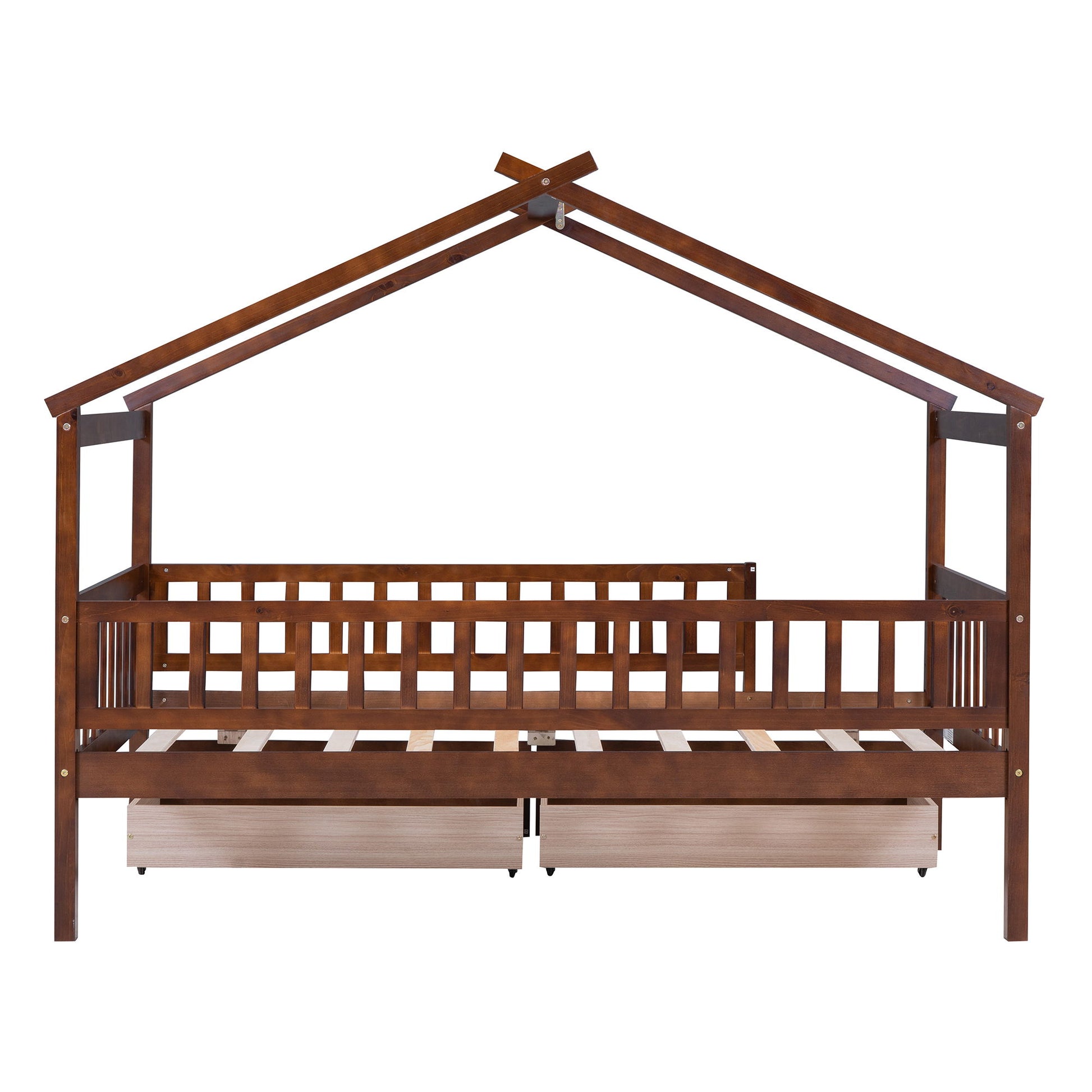 Spacious Storage: The wooden house platform bed comes with two built-in drawers, providing ample storage for clothes and toys. This design maximizes space while helping your child develop good organization habits, making it a perfect space-saving solution.
