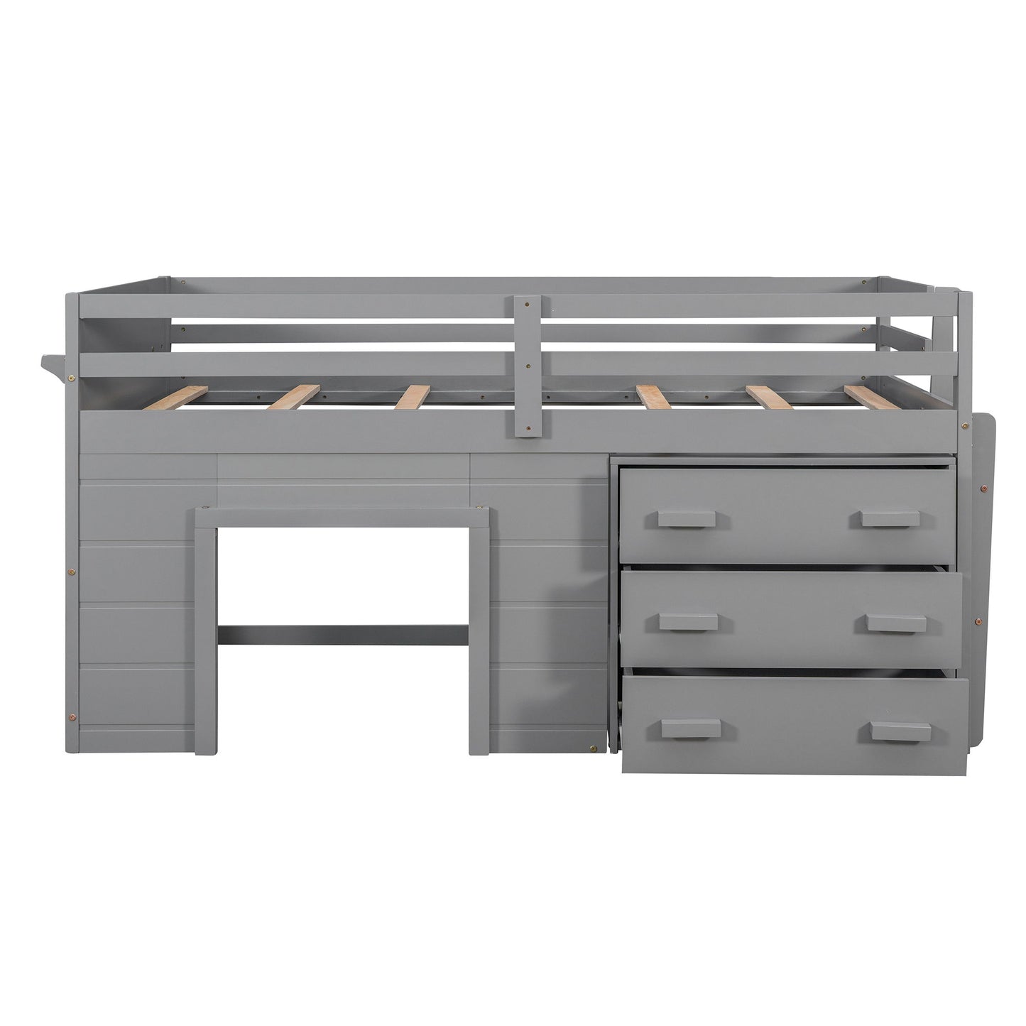 Twin Size Loft Bed With Cabinet And Shelf - Gray
