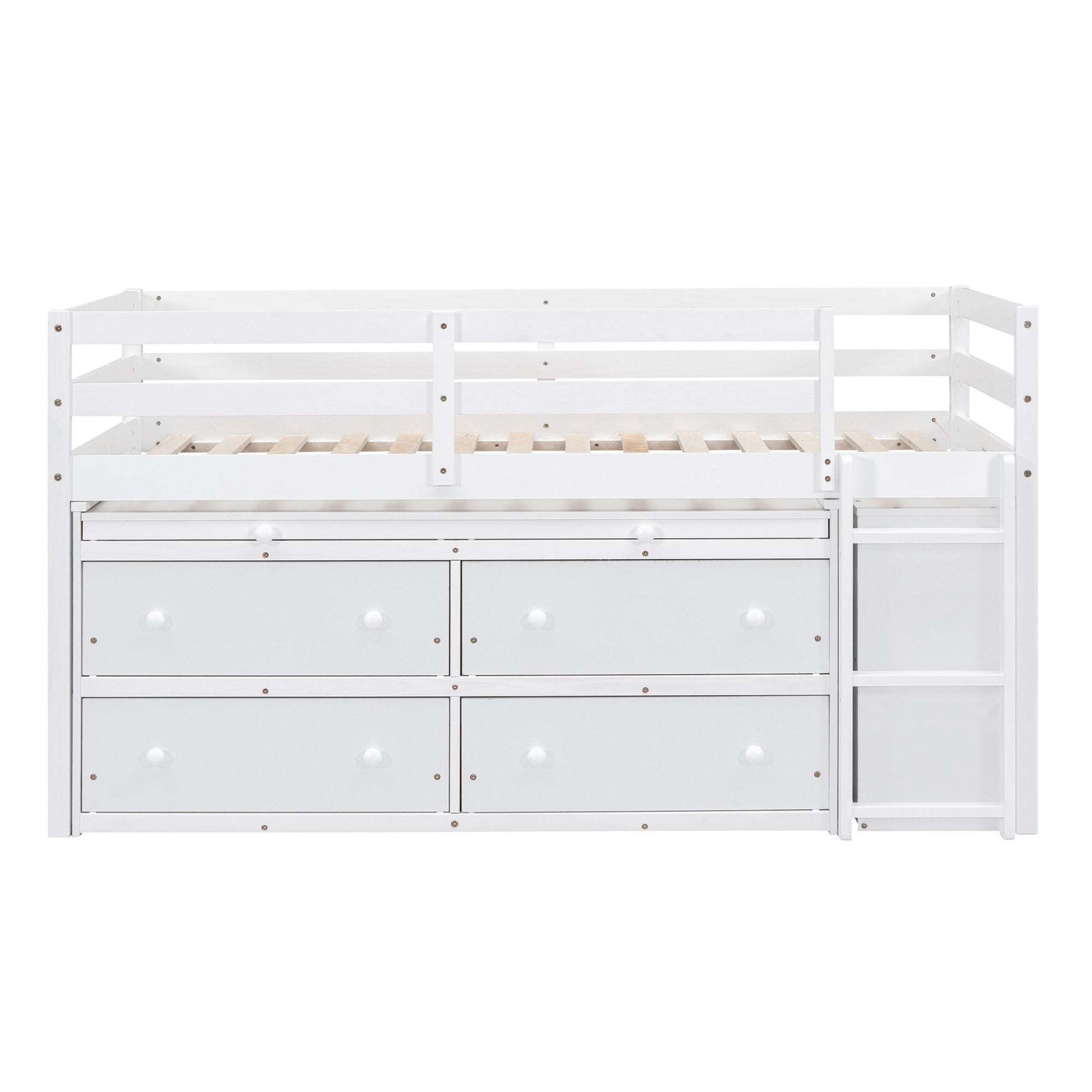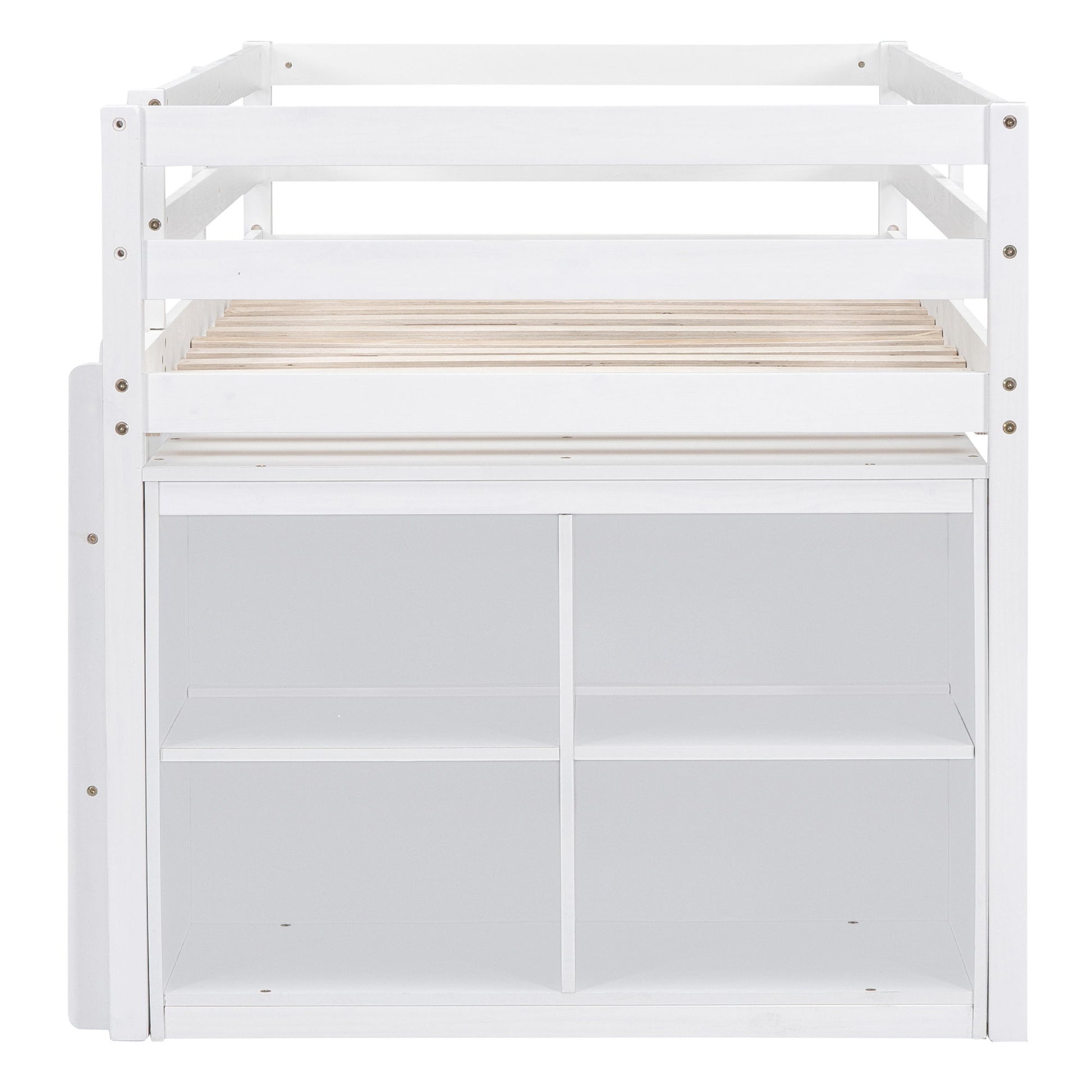 Solid Construction: Crafted from a sturdy pine wood frame and commercial-grade MDF board, this multi-functional loft bed ensures durability and safety. Guardrails are securely attached for added protection.