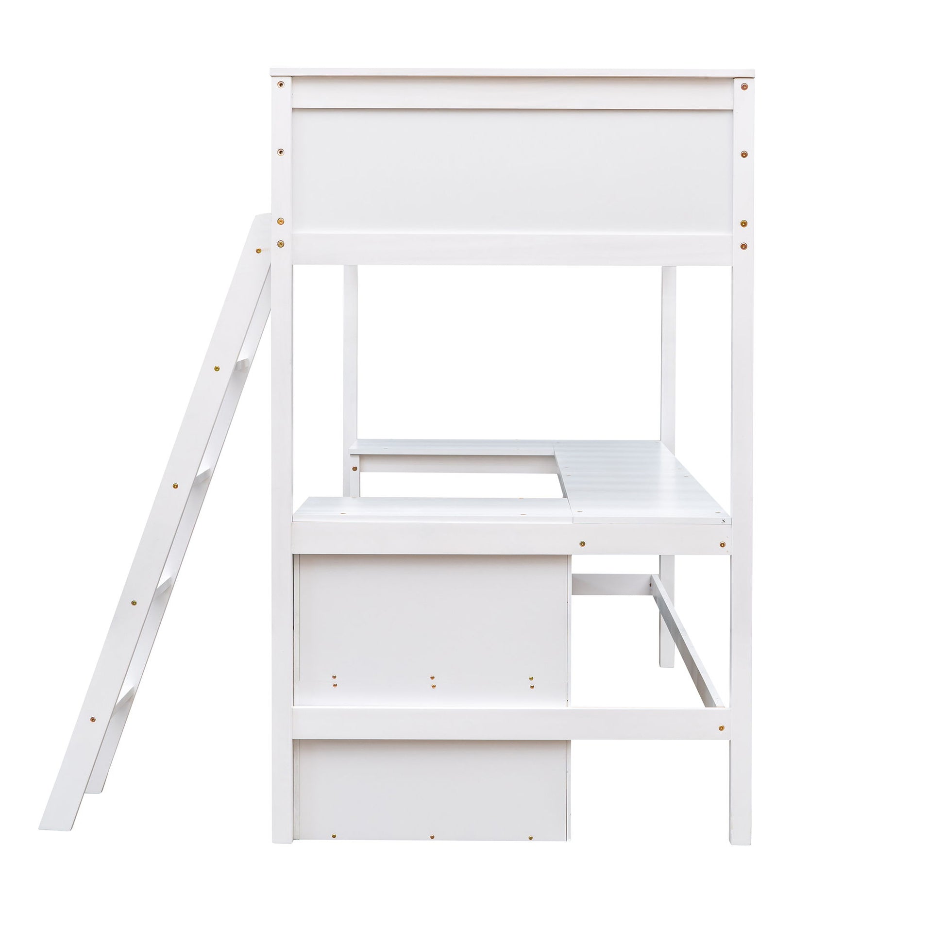 Solid Construction: This multi-functional loft bed is crafted from a solid pine wood frame with commercial-grade MDF boards for quality control and durability. The stable ladder can be assembled on either side of the bed. Guardrails are securely attached for added safety.