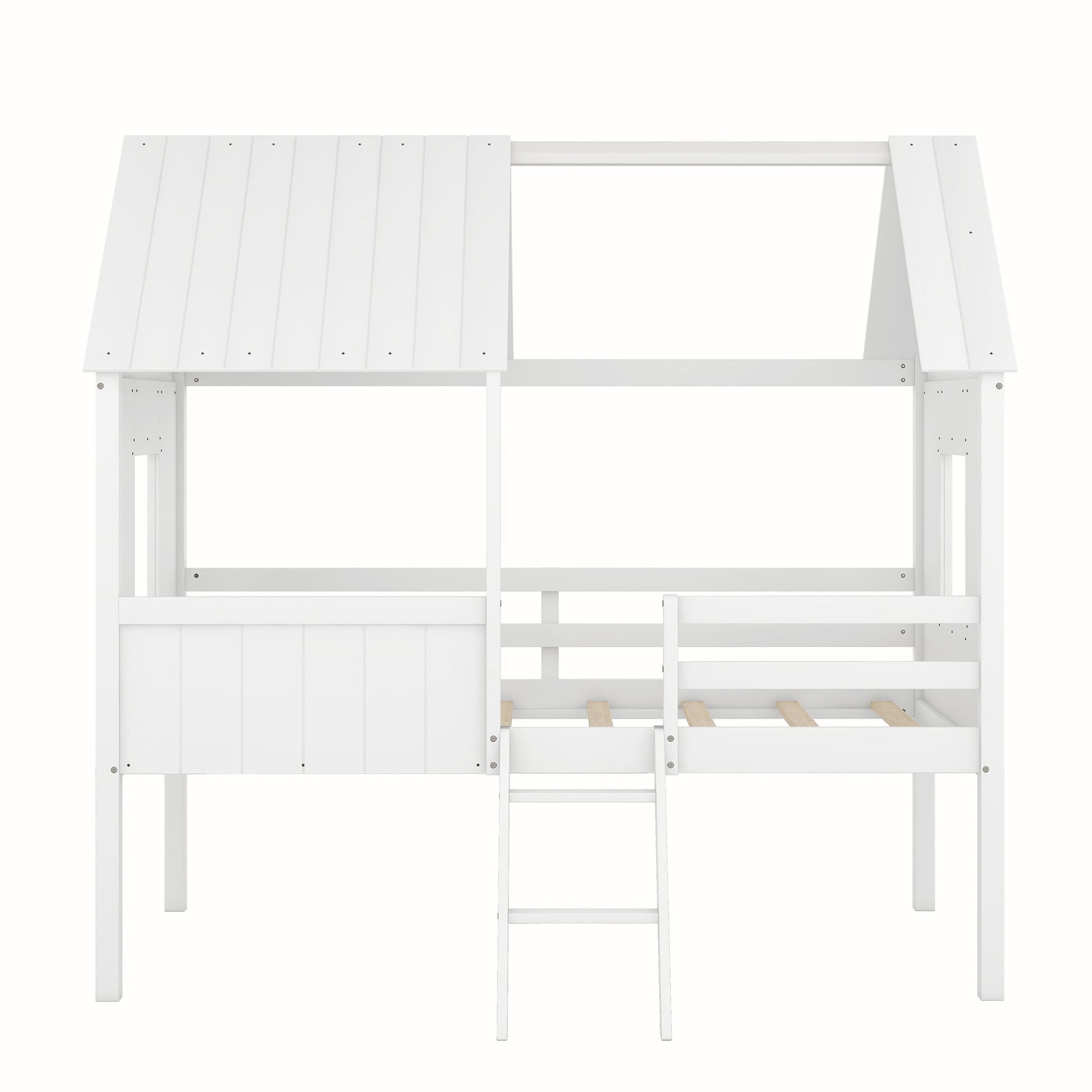 · Playhouse Design: This bed features a roof and two side windows, creating a fun space for sleeping and playing.