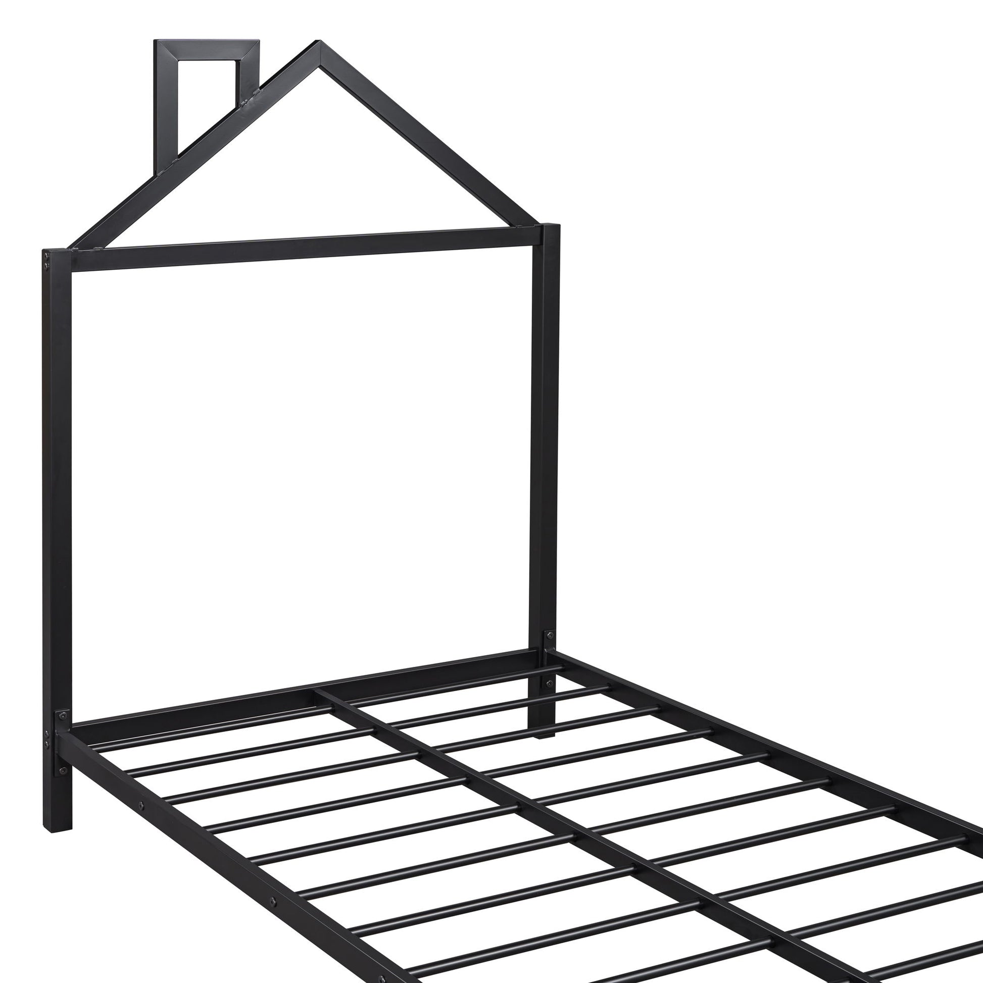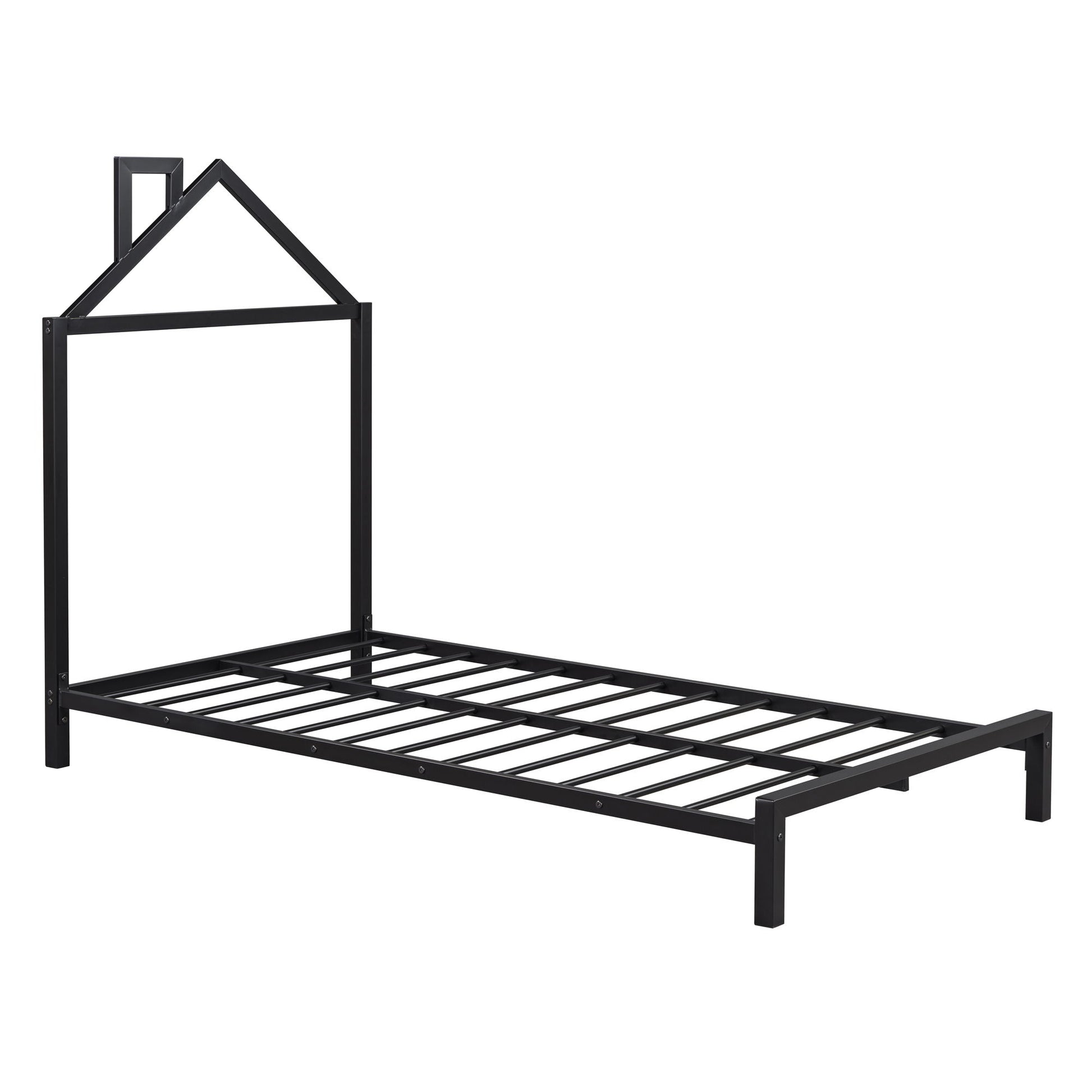 Twin Size Platform Bed With House-Shaped Headboard Design - Black