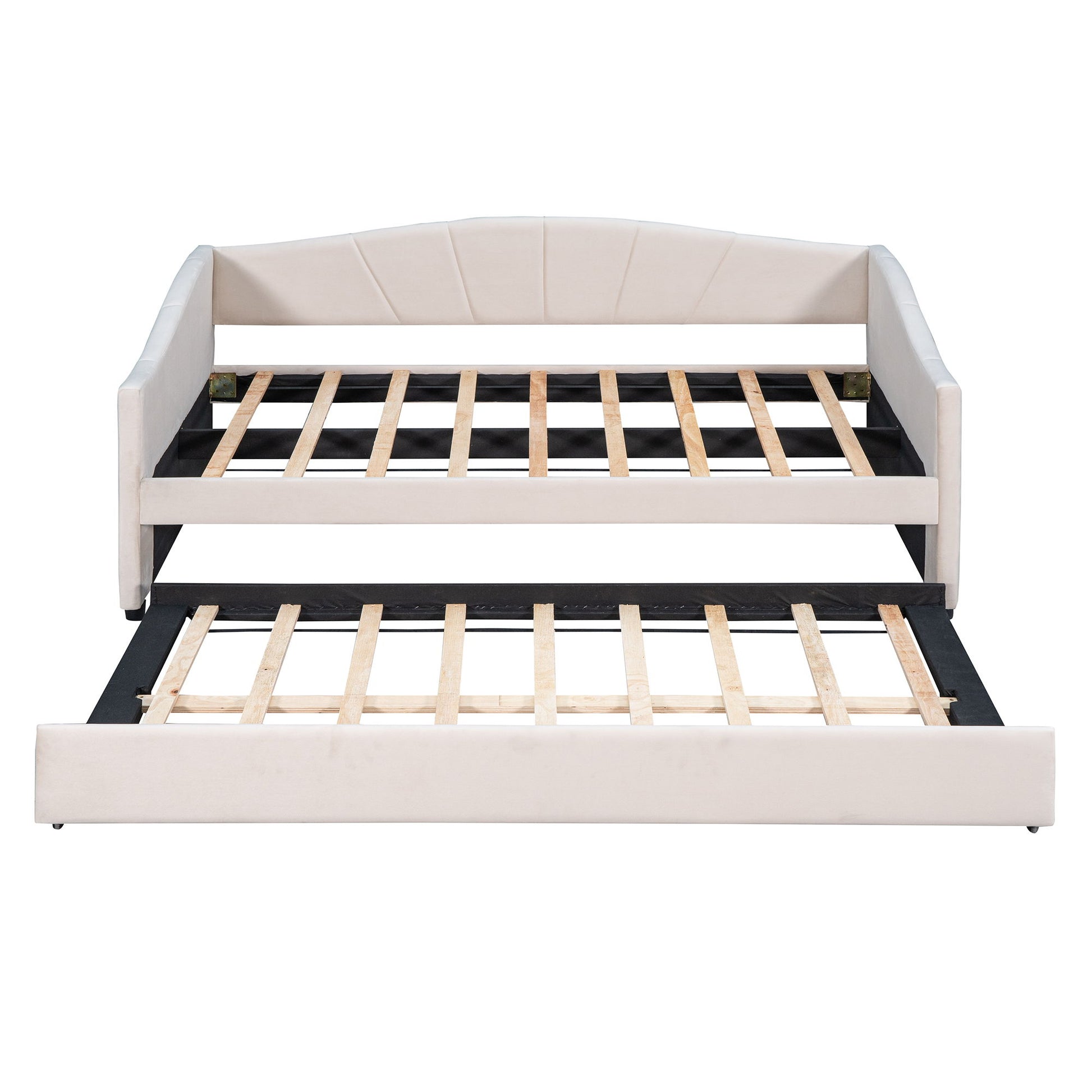 Twin Size Upholstered Daybed Sofa Bed With Trundle And Slat - Beige