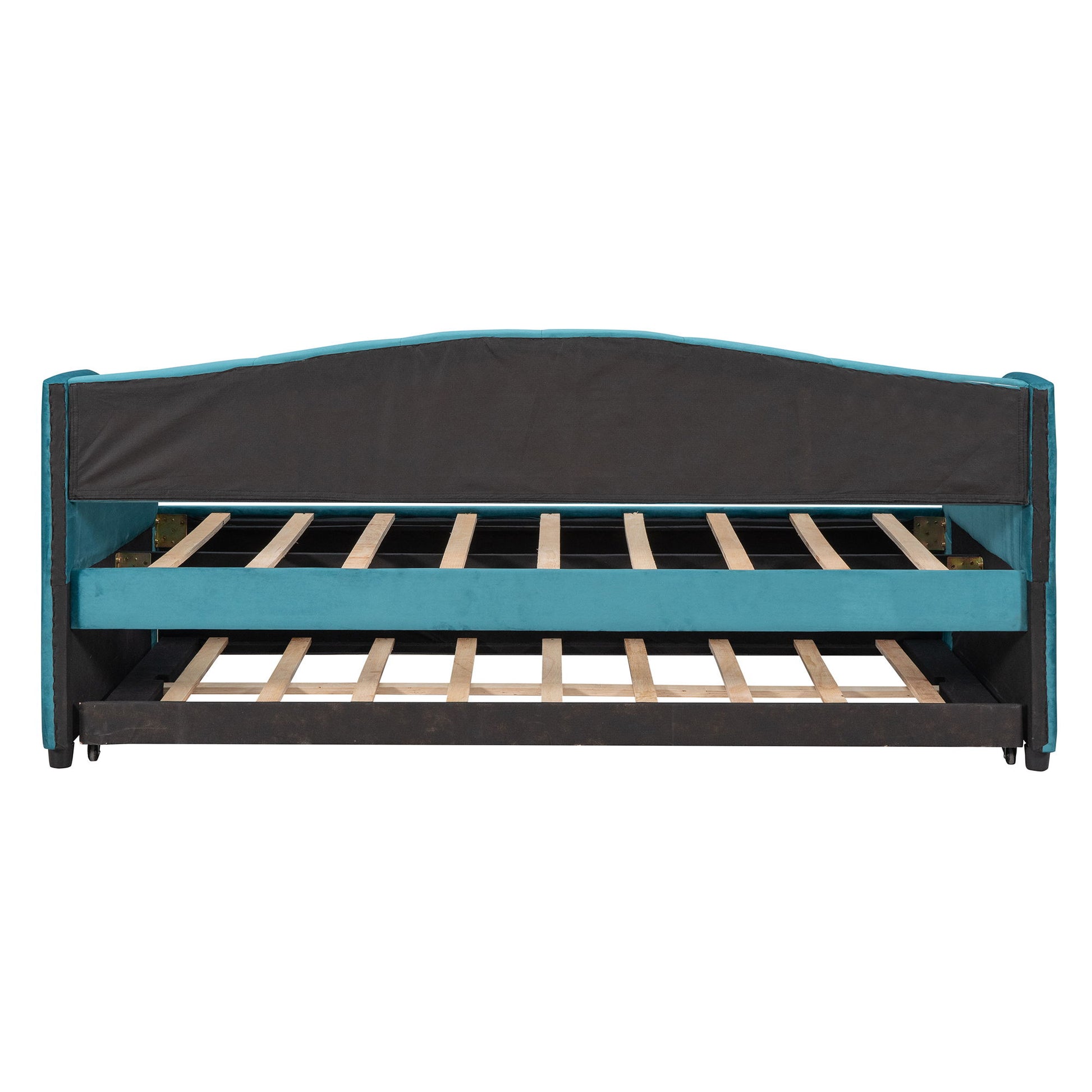 Twin Size Upholstered Daybed Sofa Bed With Trundle And Slat - Blue