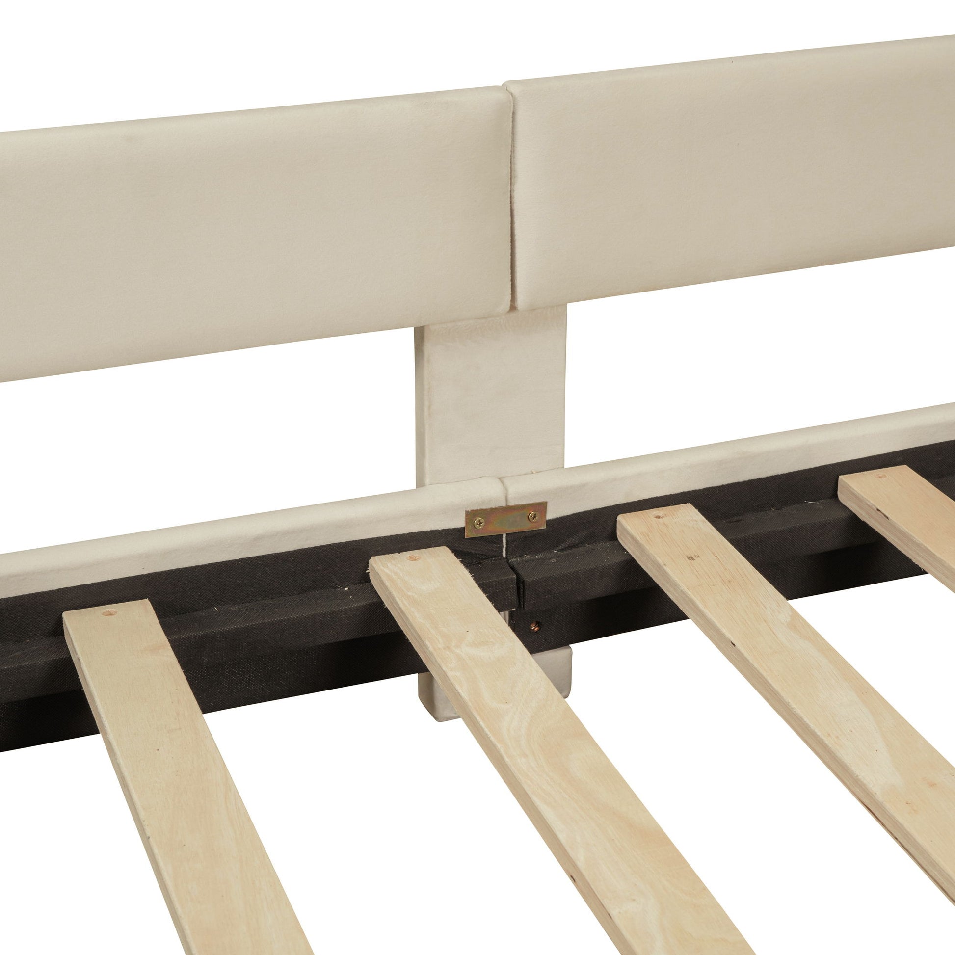 Twin Size Upholstered Daybed With Classic Stripe Shaped Headboard - Beige