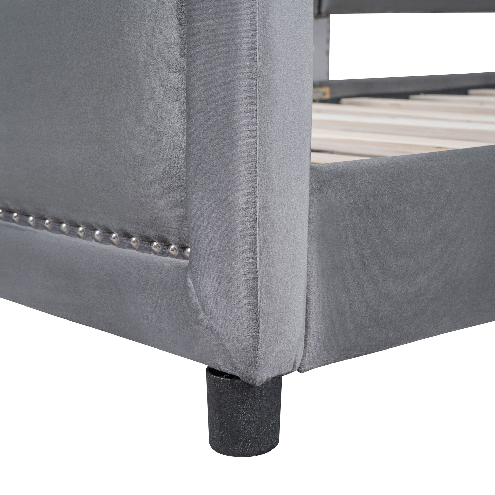 Twin Size Upholstered Daybed With Classic Stripe Shaped Headboard - Gray