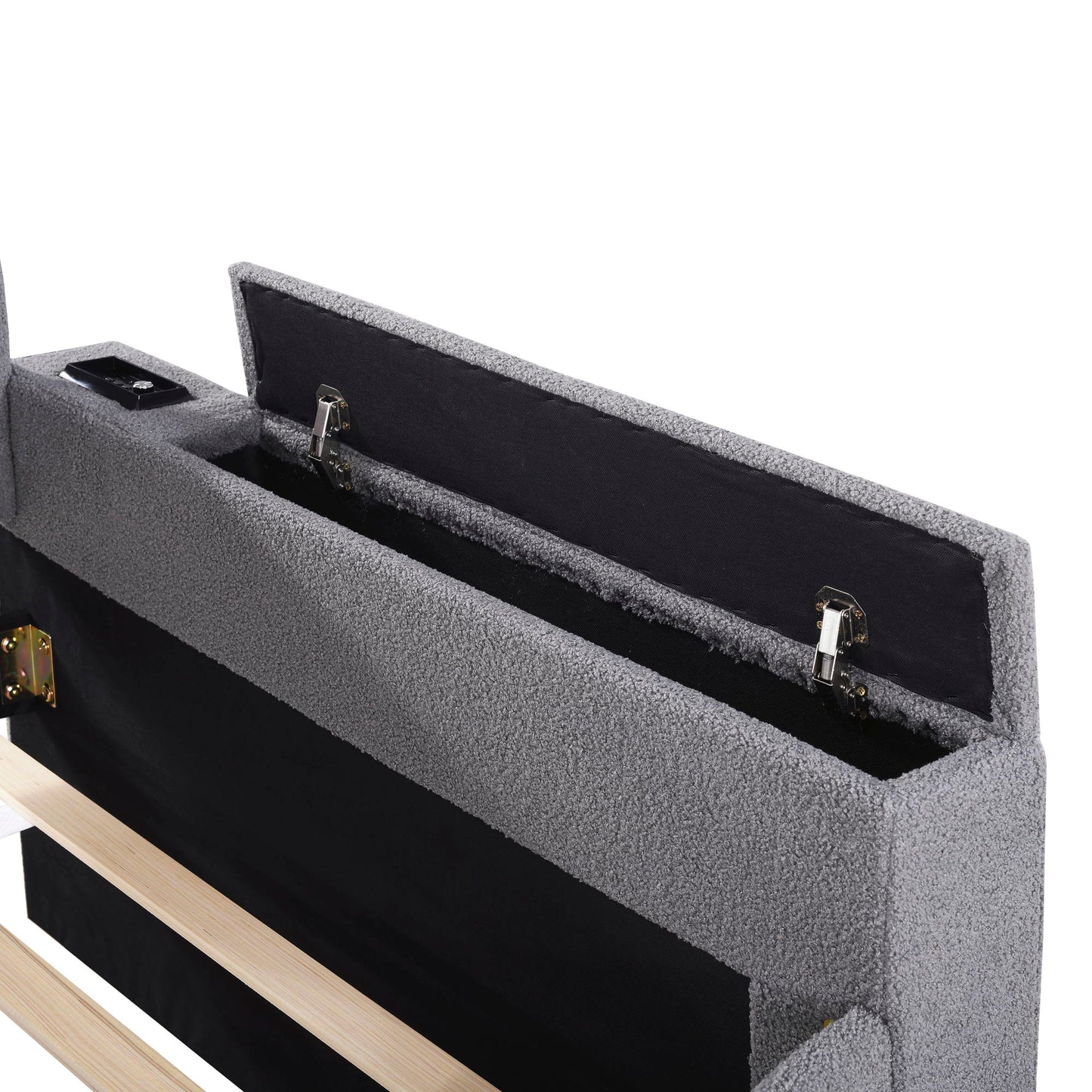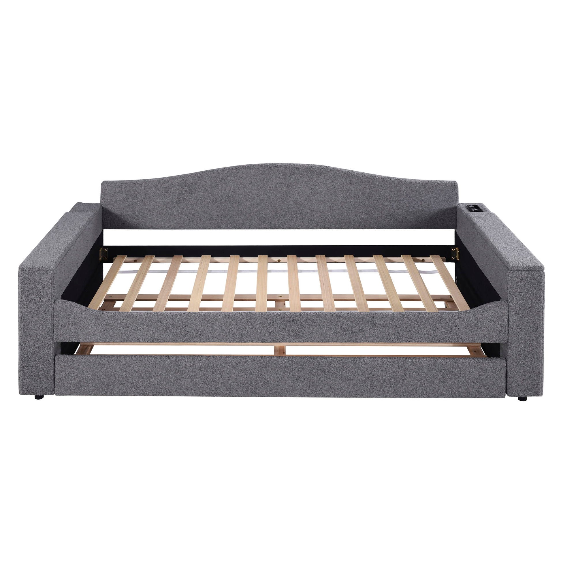 Twin Size Upholstered Daybed With Storage Armrests, Trundle And Latest Integrated Bluetooth Audio System - Gray