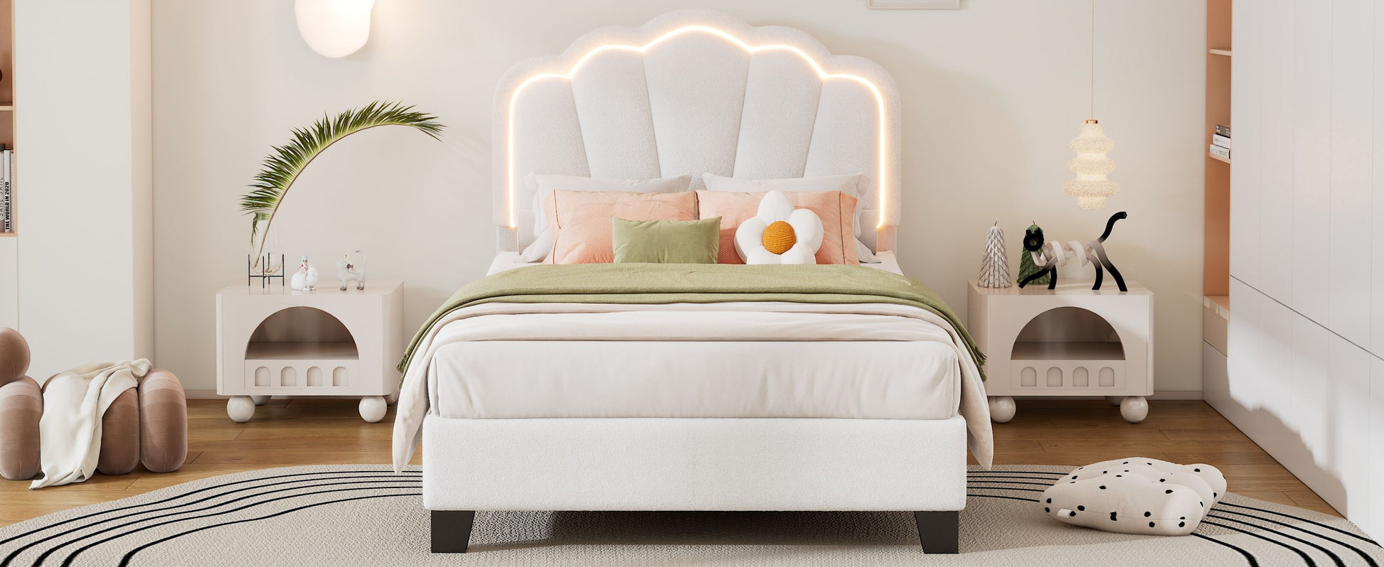 - Elegant Flower Headboard: The headboard features a unique flower shape, complemented by sherpa fabric, offering a warm feeling and enhancing the sleeping experience. Its elegant silhouette adds chic and subtle beauty to any bedroom setting.