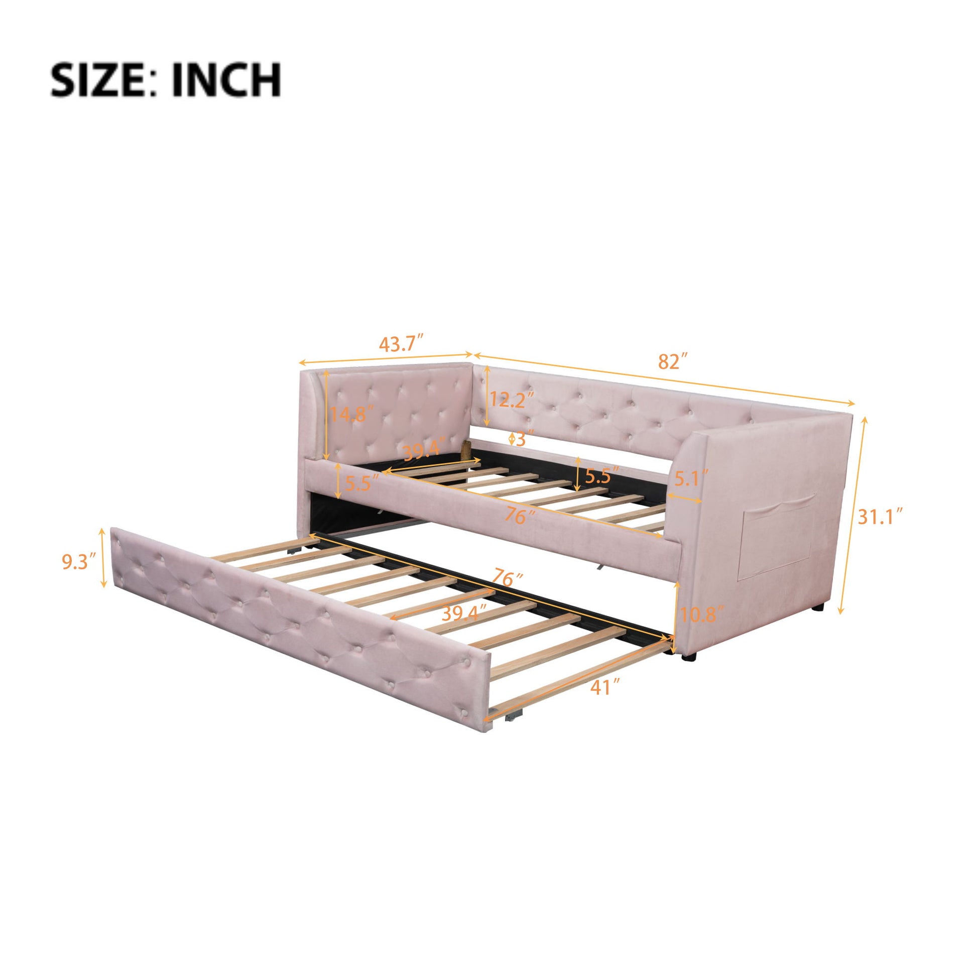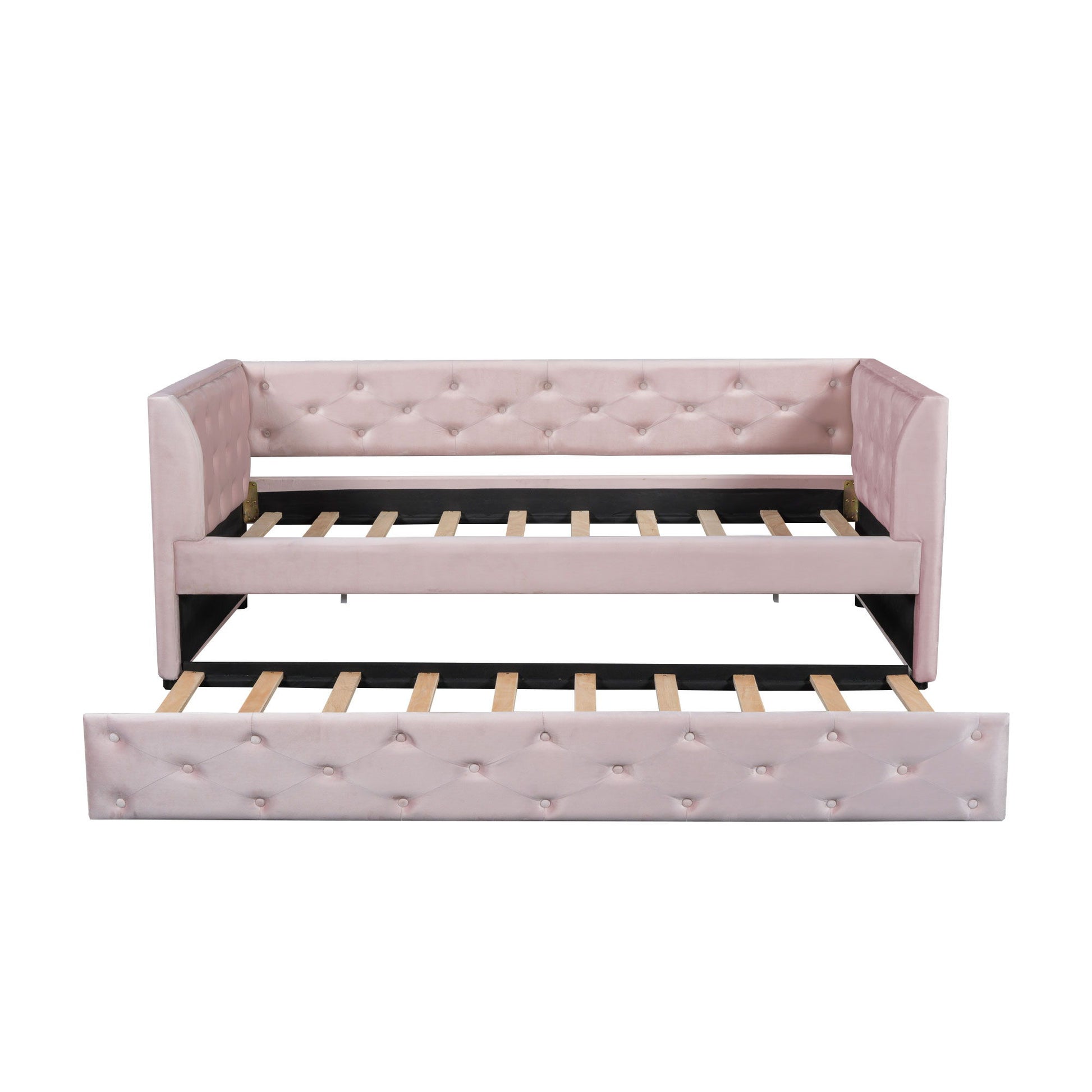 Twin Size Upholstered Tufted Daybed With Trundle - Pink