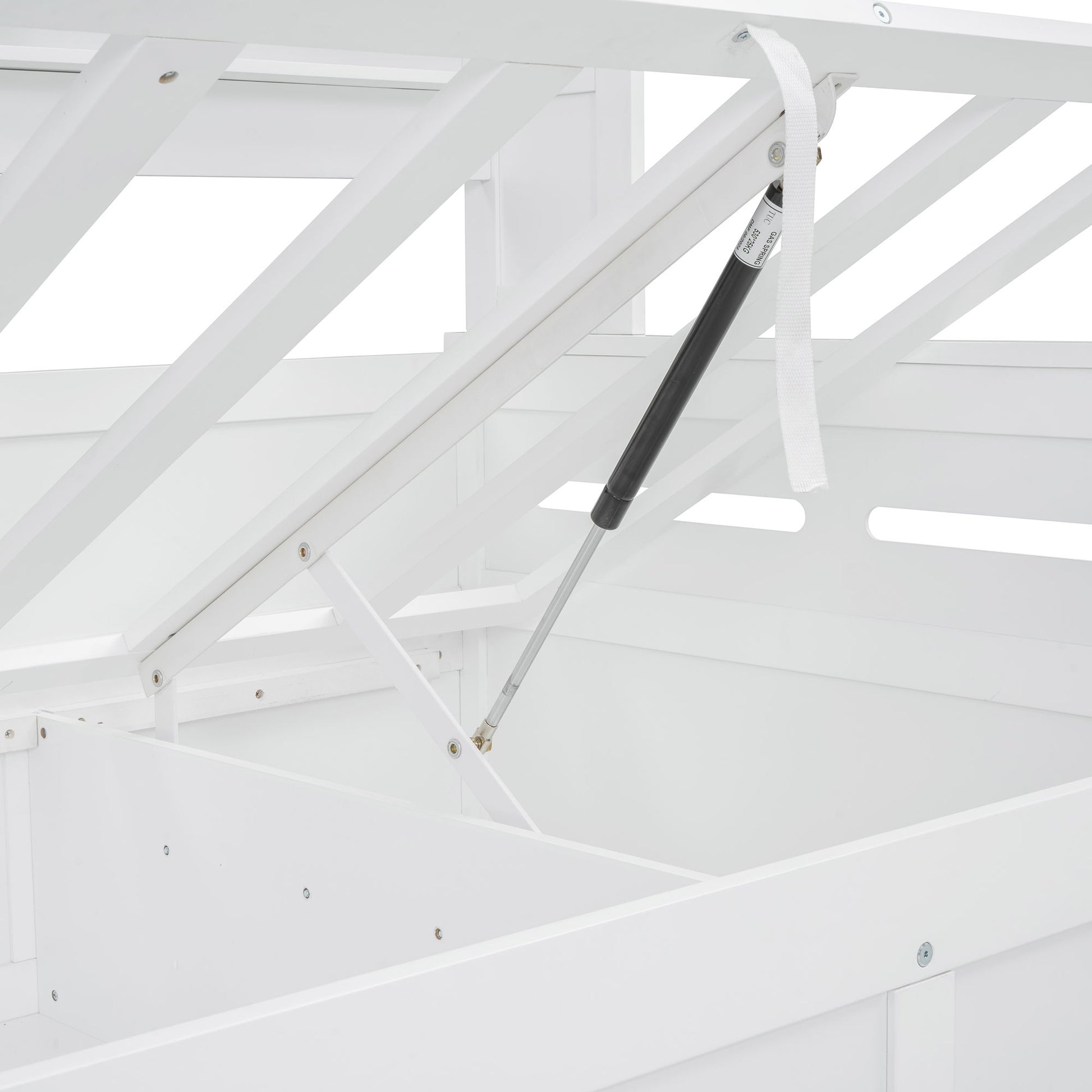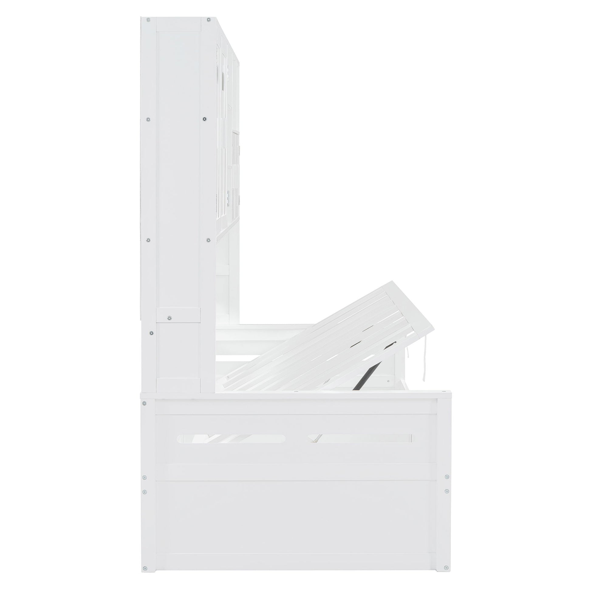 Twin Size Wooden Daybed With Hydraulic Bed And All In One Cabinet And Shelf - White