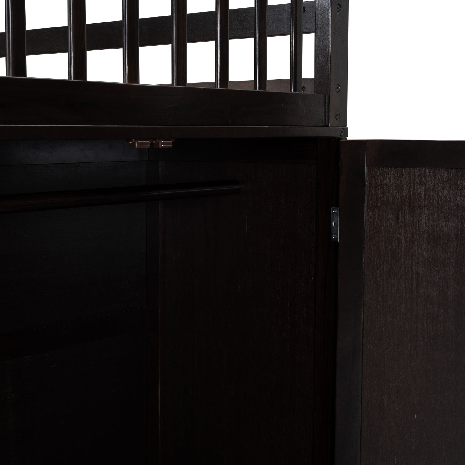 Twin Twin Over Full L Shaped Bunk Bed With 3 Drawers, Portable Desk And Wardrobe - Espresso