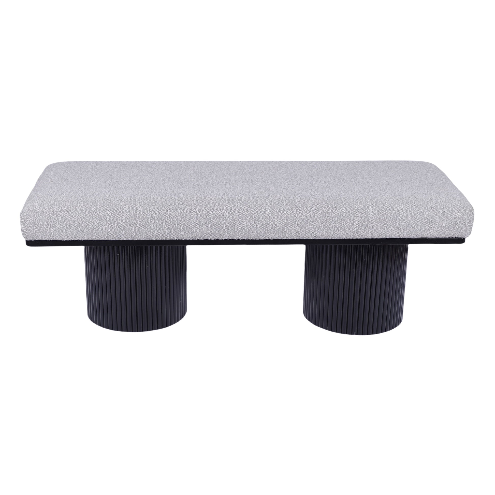 Upholstered Bench With Black Chunky Legs Boucle Contemporary Style Bed-End Bench For Bedroom Living Room - Light Gray