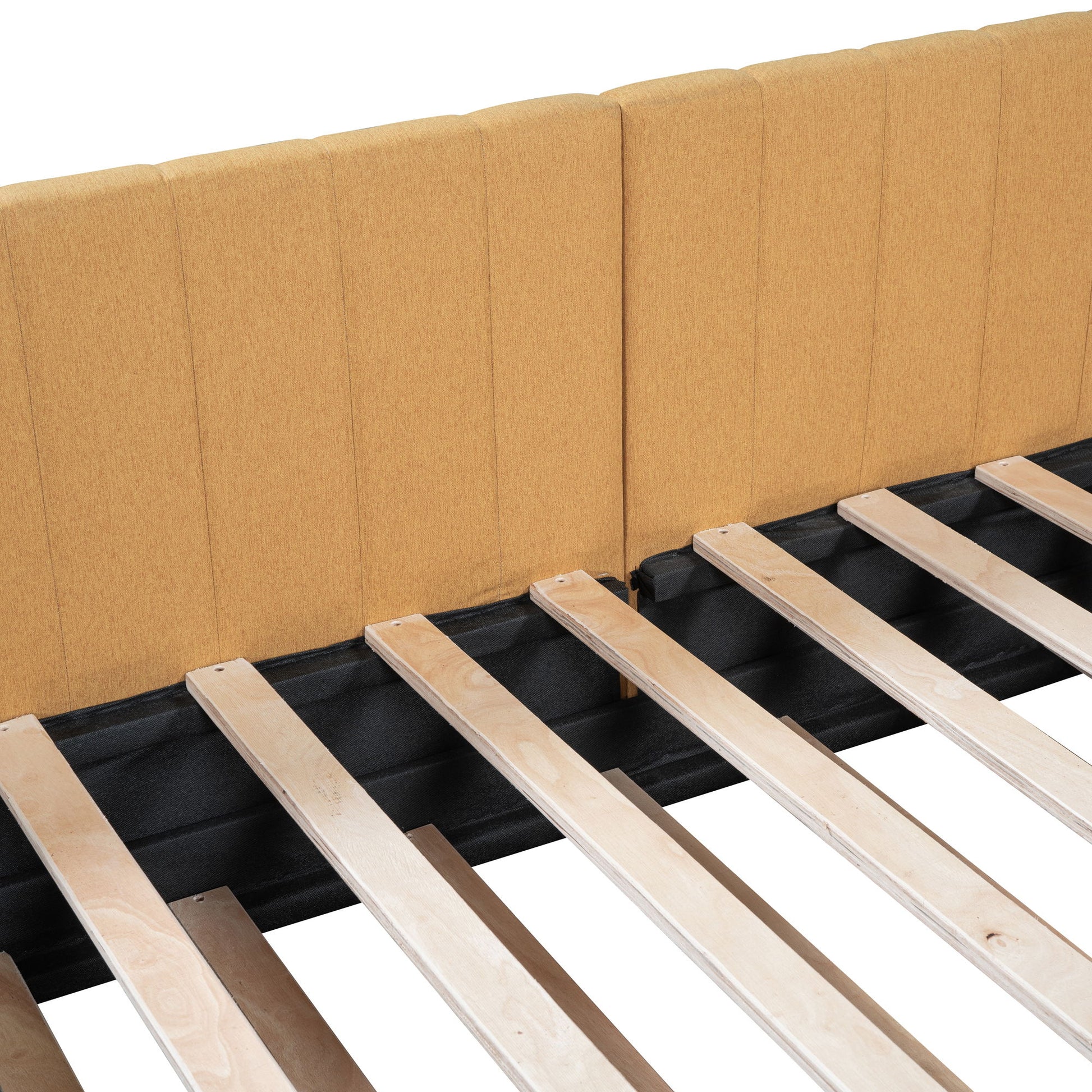 Upholstered Daybed With Trundle Twin Size Sofa Bed Frame No Box Spring Needed, Linen - Yellow