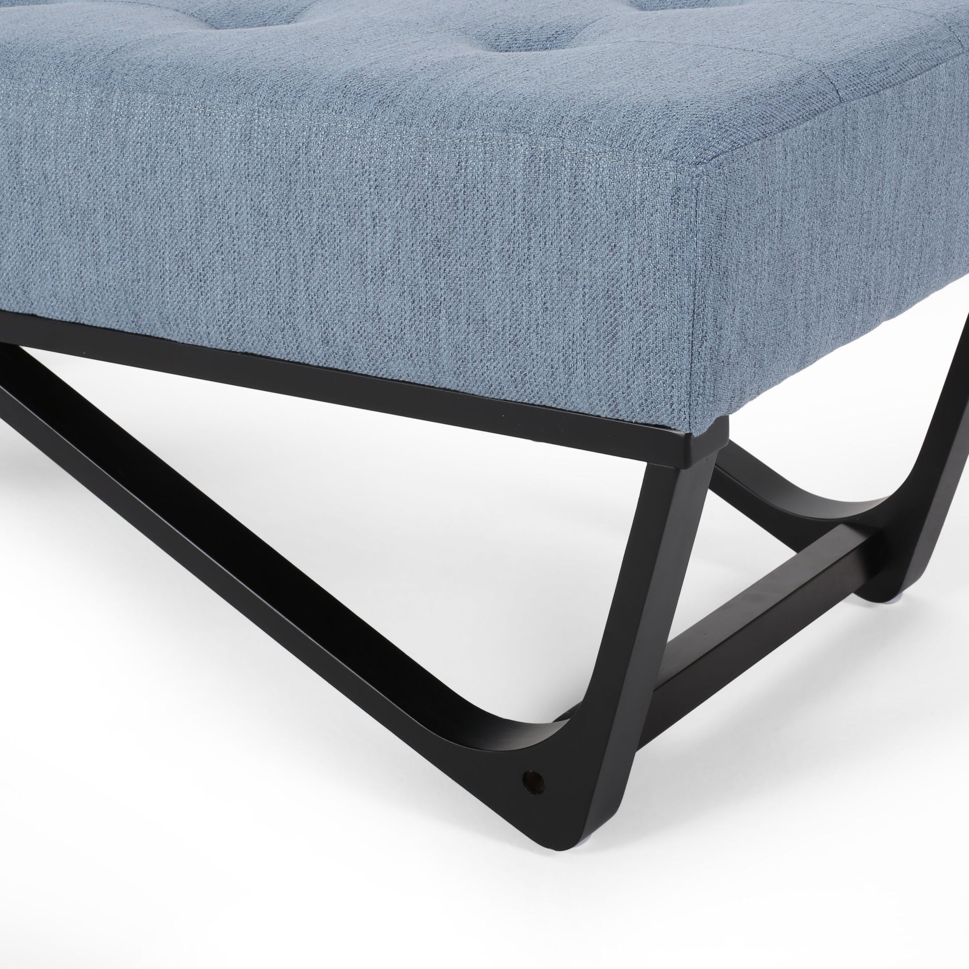 Upholstered Ottoman With Button Tufted Waffle Stitch And Black Geometric Legs - Light Blue