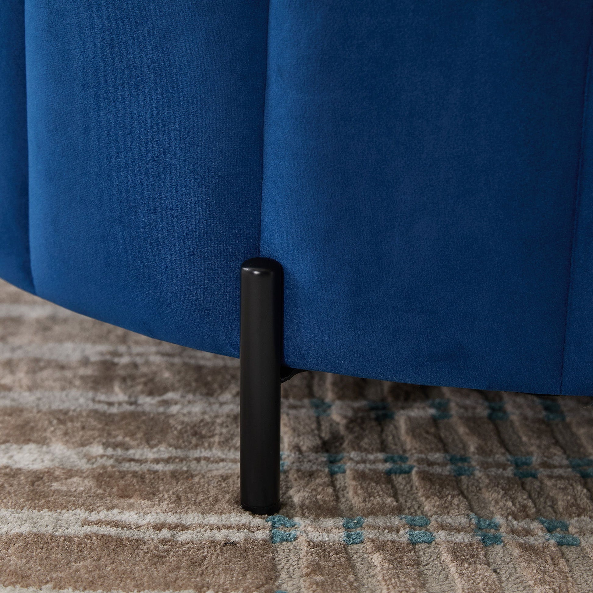 Upholstered Round Ottoman With Reversible Lid, Velvet Storage Stool, Channel Tufted Pumpkin Shape Footstool For Living Room, Bedroom And Office - Navy