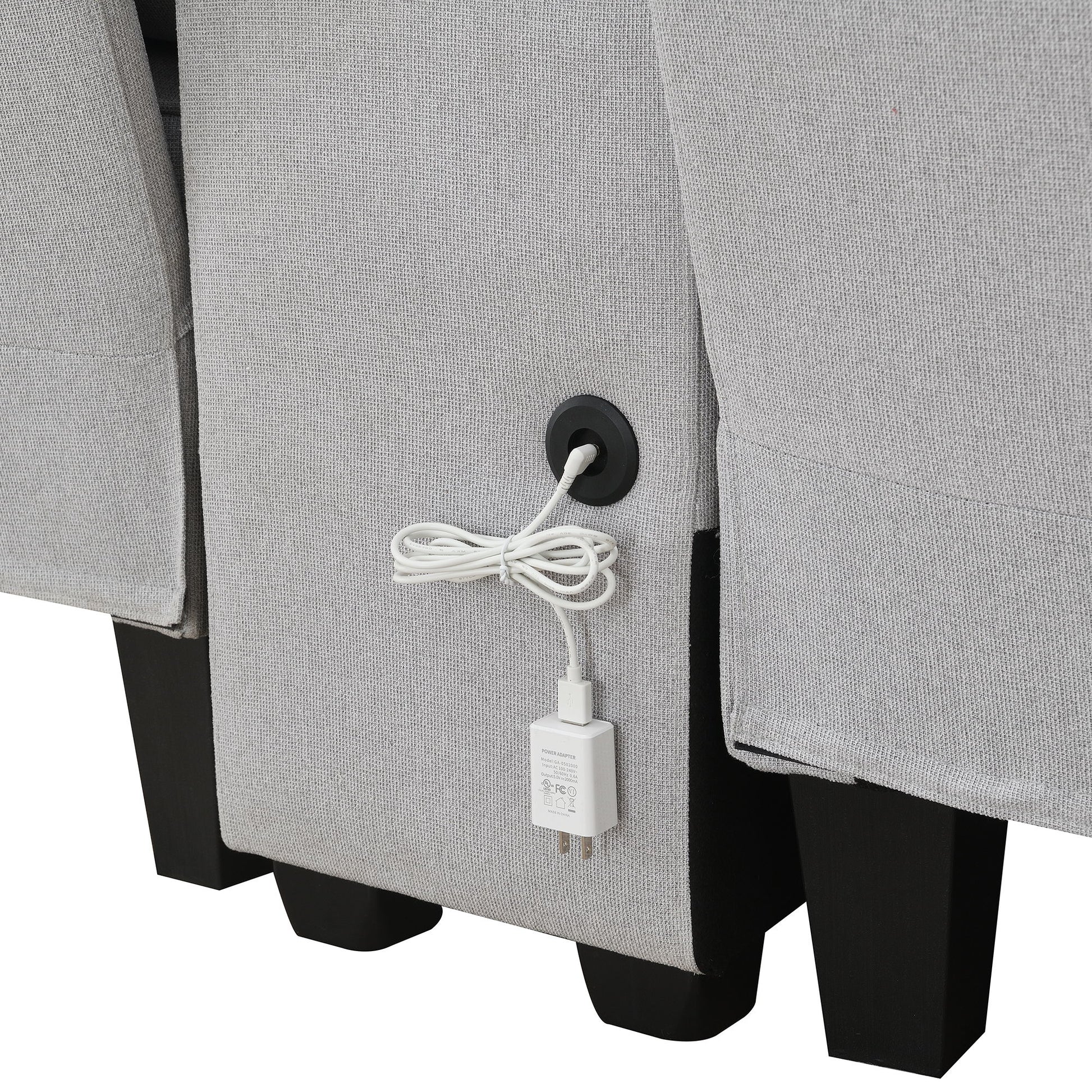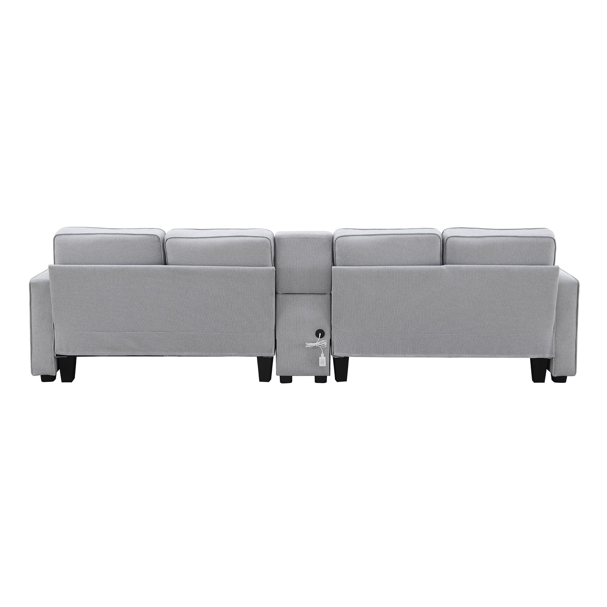 Upholstered Sofa With Console, 2 Cupholders And 2 USB Ports Wired Or Wirelessly Charged, Modern Linen Fabric Couches With 4 Pillows (4 Seat) - Light Gray