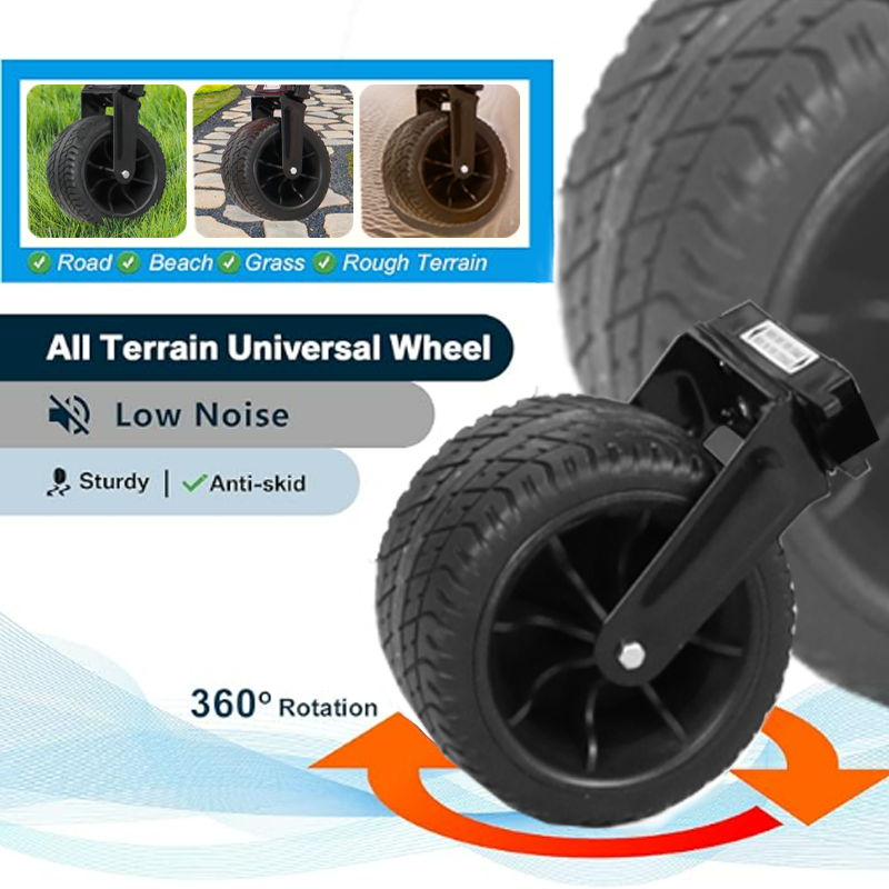 - All-terrain Wheels: Equipped with four large wheels, including 360° rotating front wheels, for smooth transport on sand, gravel, grass, or various terrains, making it easy to push and pull.