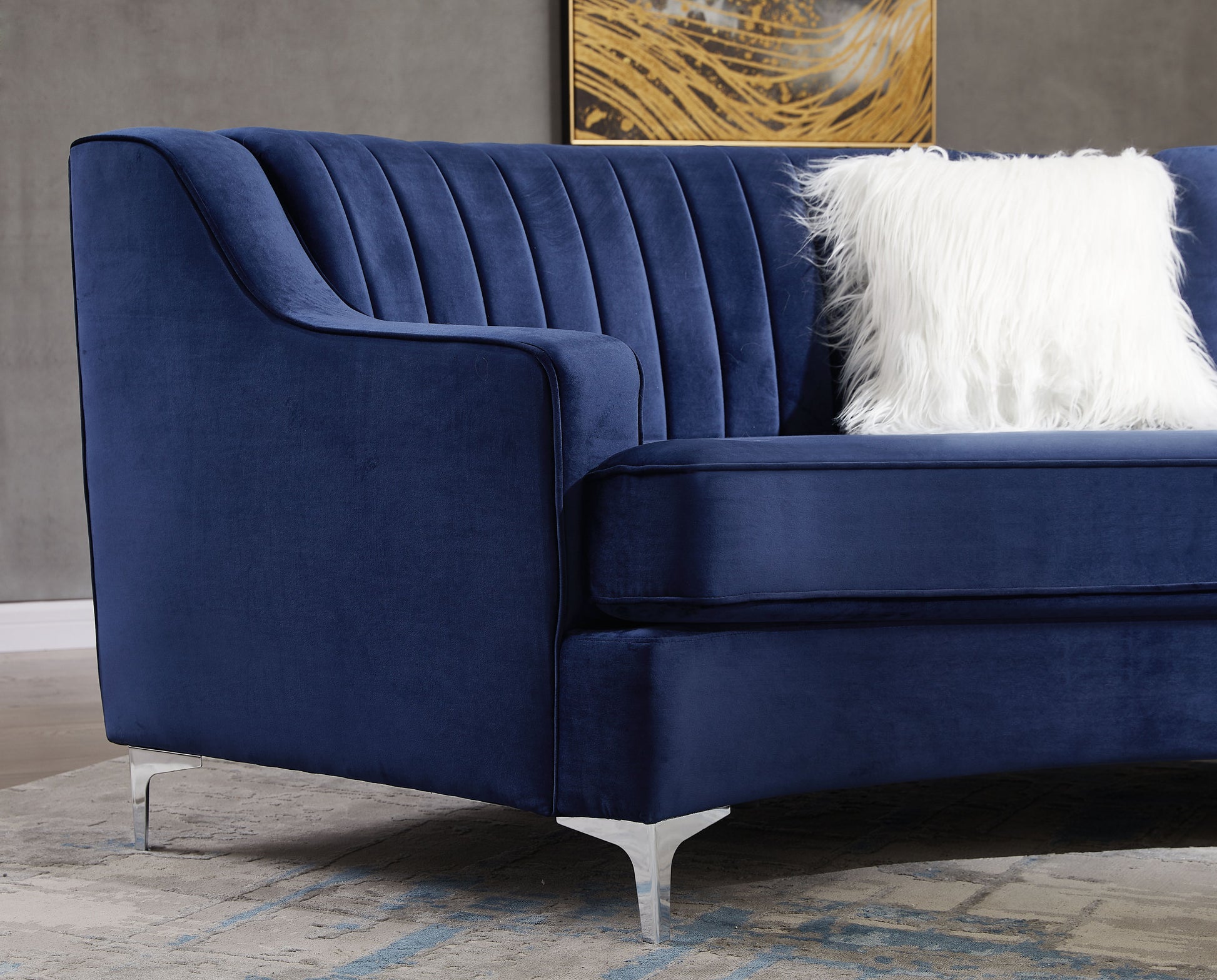 Velvet Curved Sofa - Navy Blue
