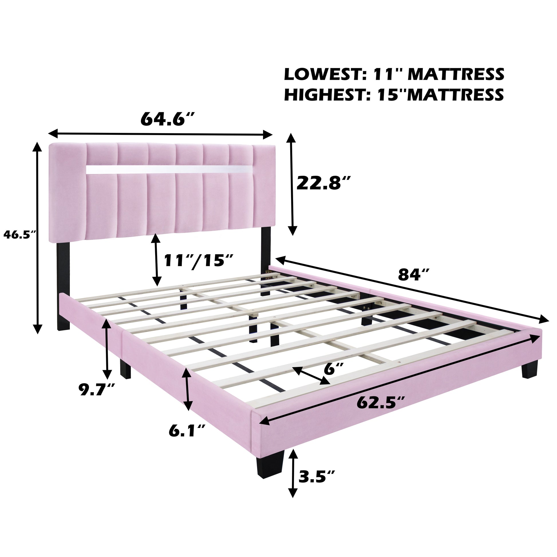 Velvet Upholstered Bed Frame With Adjustable Features, Teenage Girl's Favorite Collection - Pink