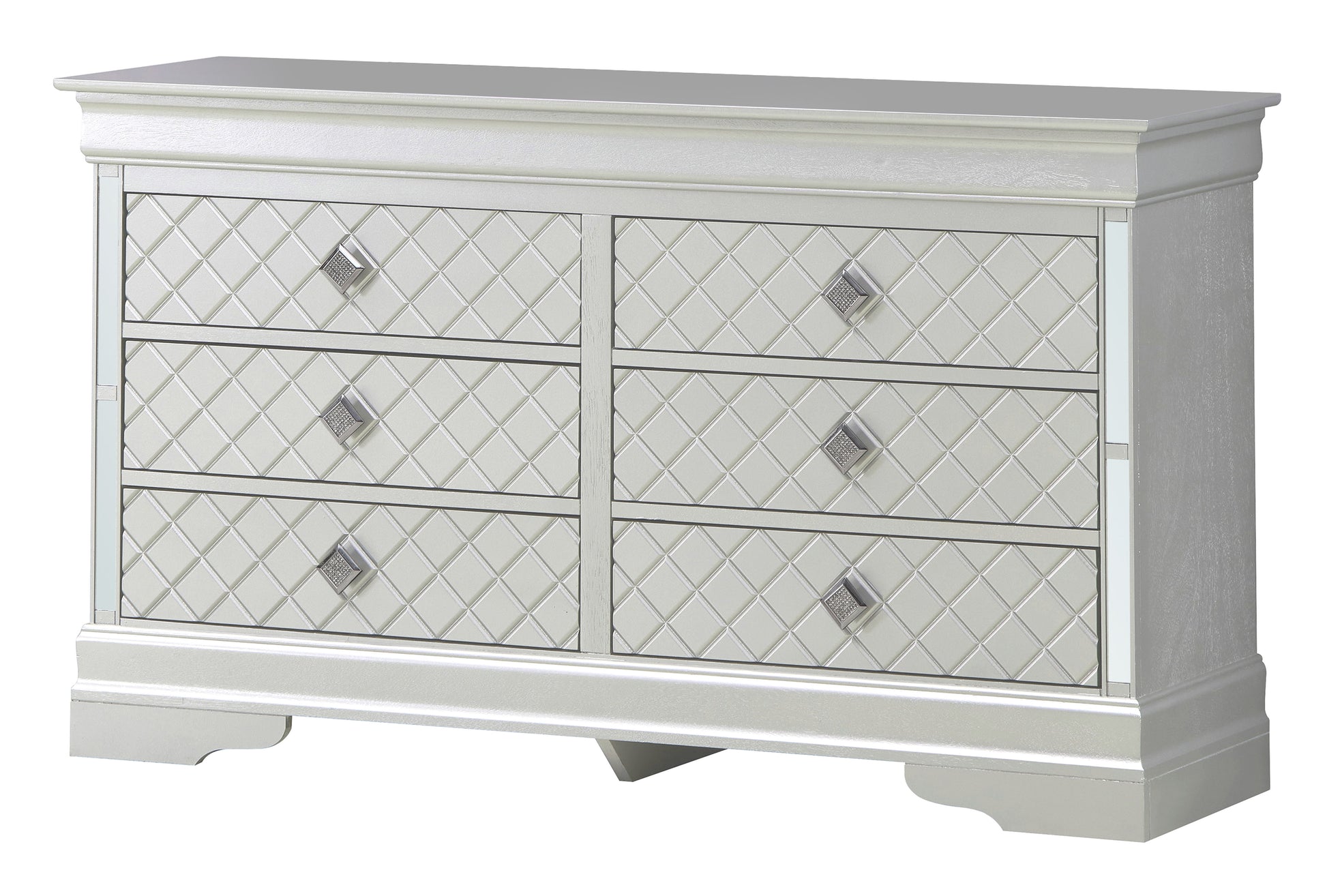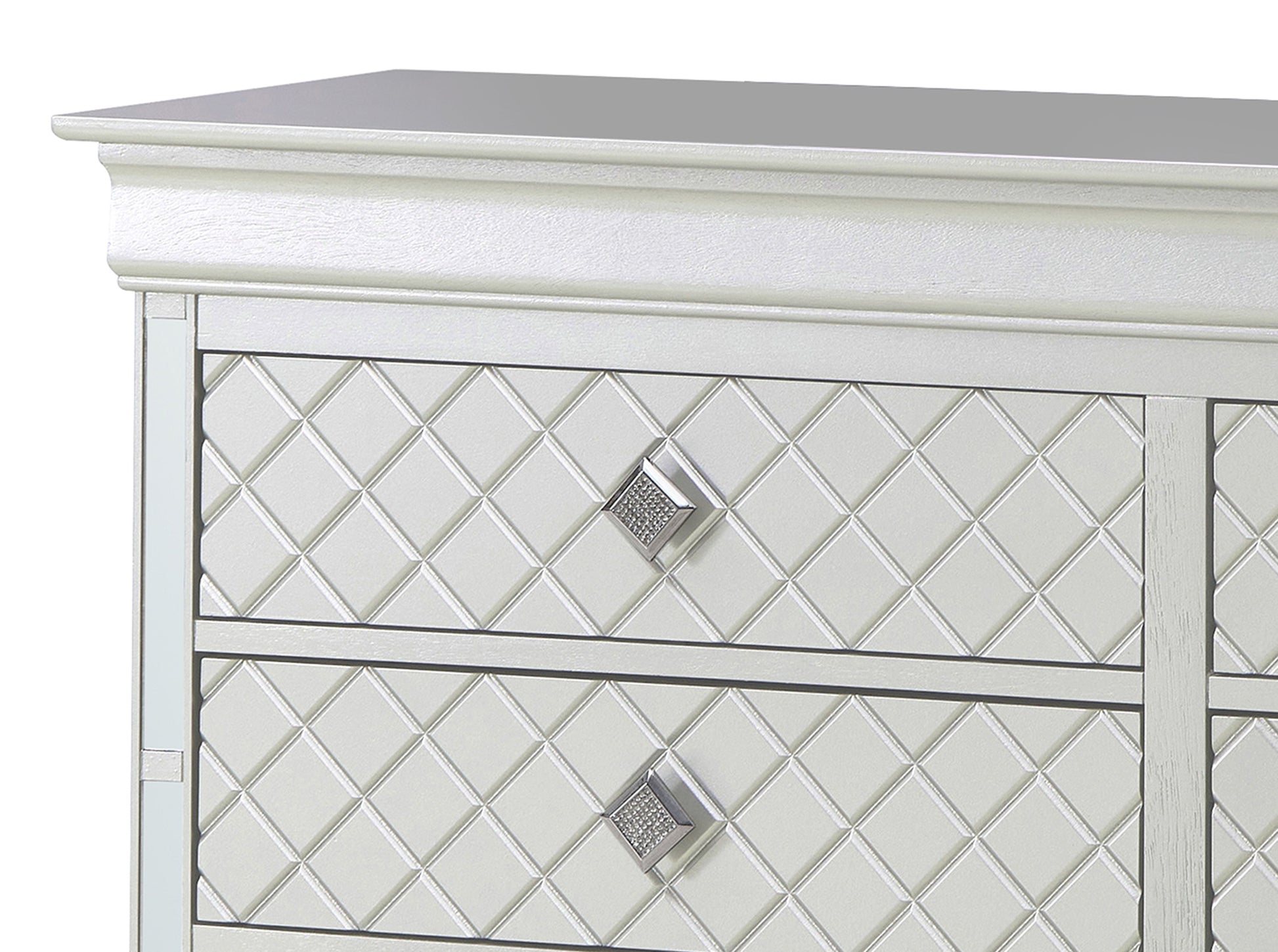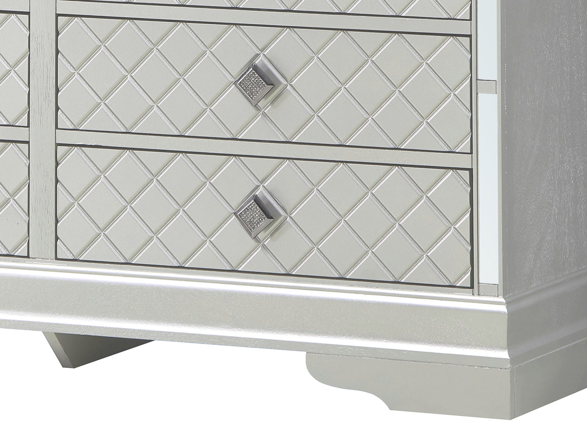 - Embossed "X" Design on Wood Veneers: Silver Champagne finish with an updated traditional design.