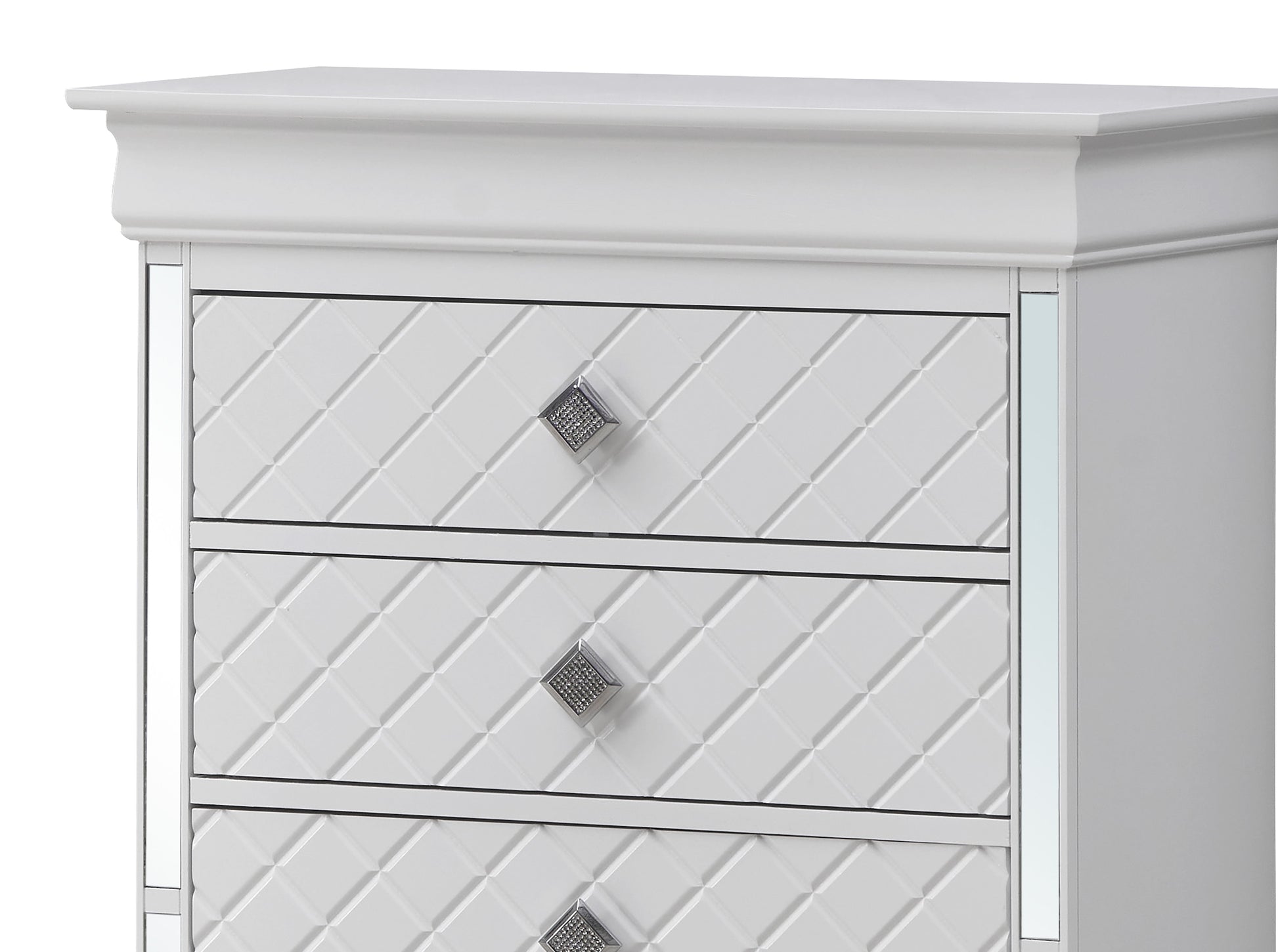 - Embossed "X" Design: Silver champagne embossed "X" design on wood veneers enhances the bedroom group's aesthetics.