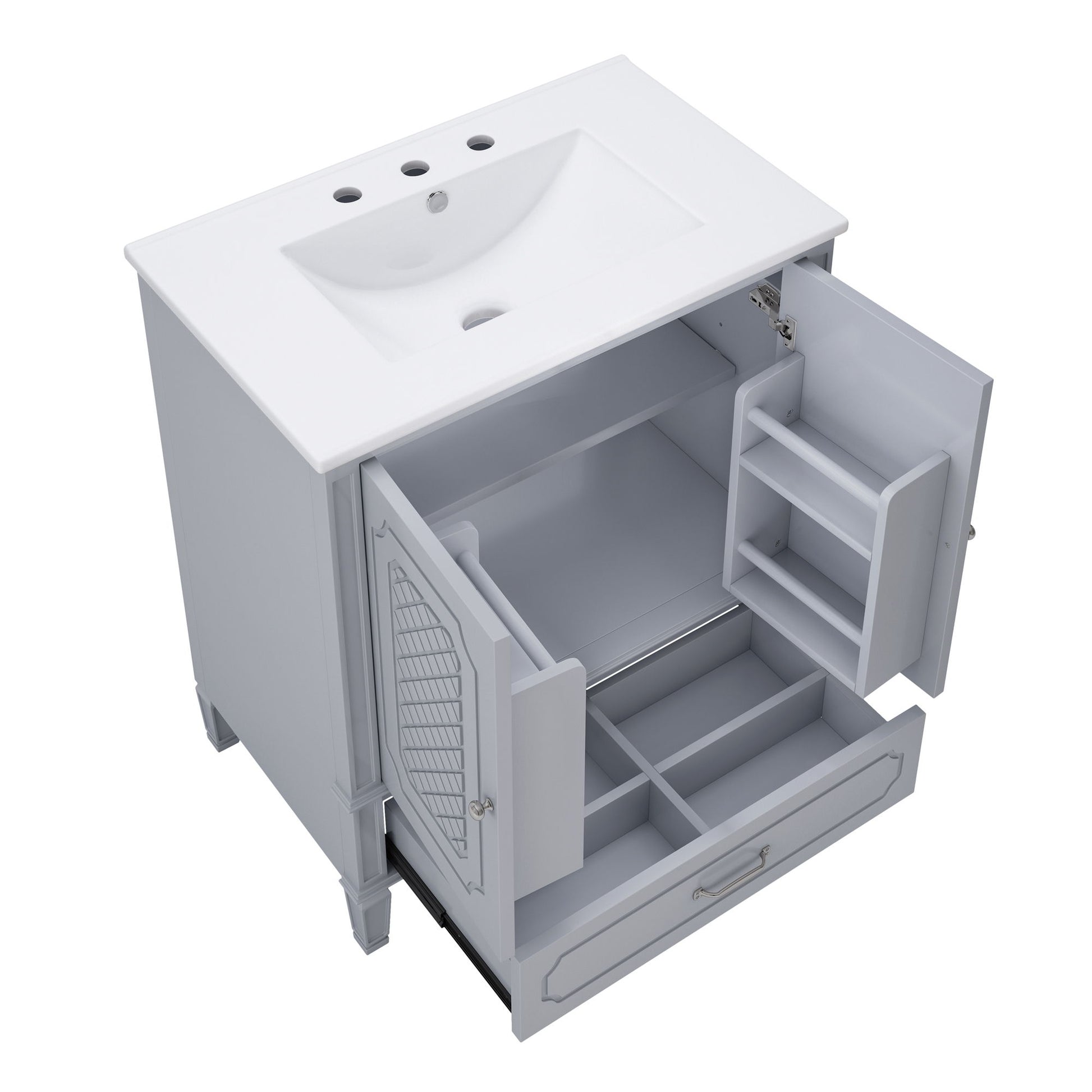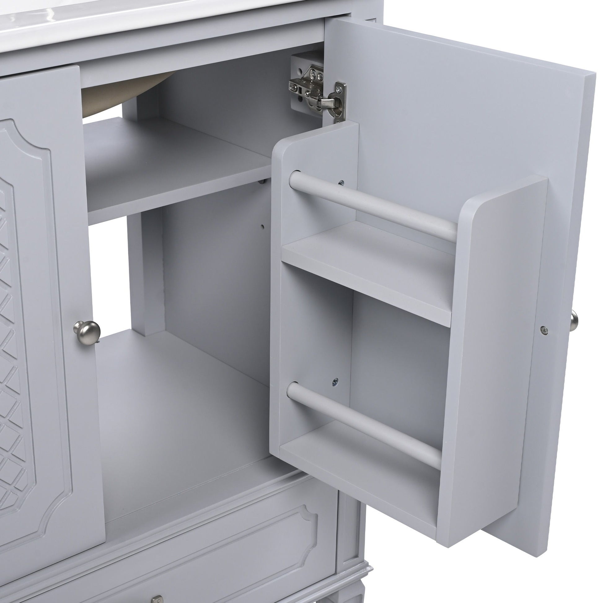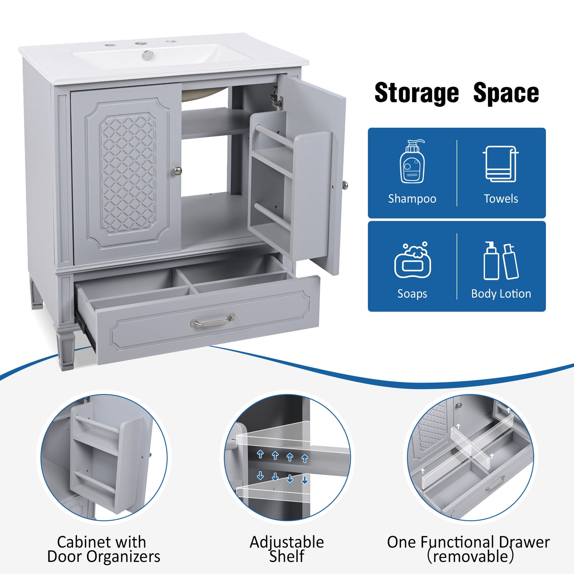 Vintage Style 30" Bathroom Vanity With Sink, Multi Functional Storage, Soft Closing Door - Gray