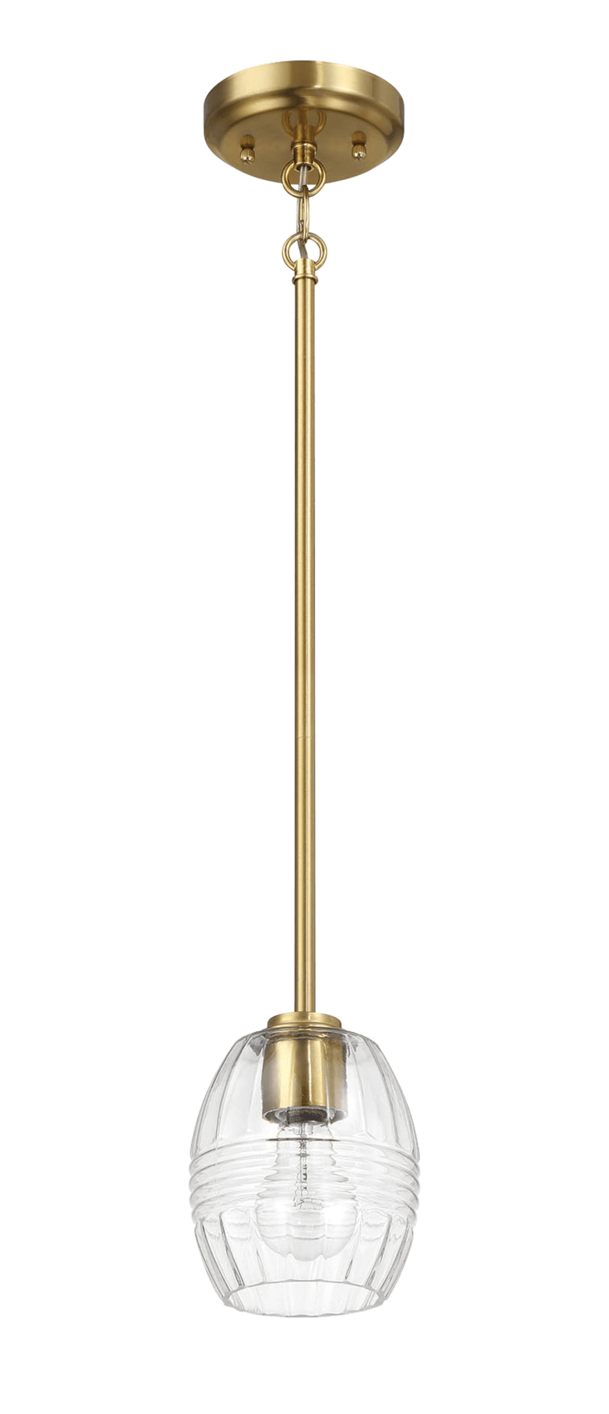 - Elegant Design: The Vista Single Pendant Chain Hanging Light features a clear glass shade and a satin brass finish, creating a stylish and sophisticated look that enhances any space.