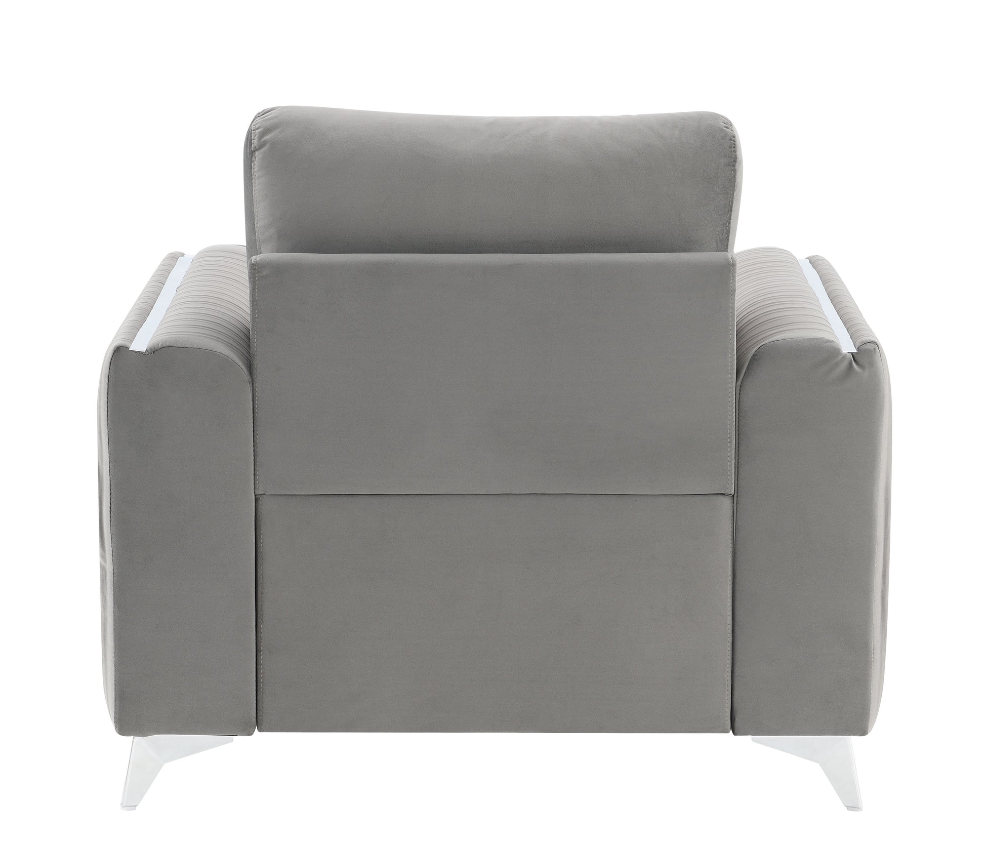 - Luxurious Design: This gray velvet chair adds a luxurious and modern touch to any space with its soft velvet upholstery paired with sleek chrome-finished metal legs.