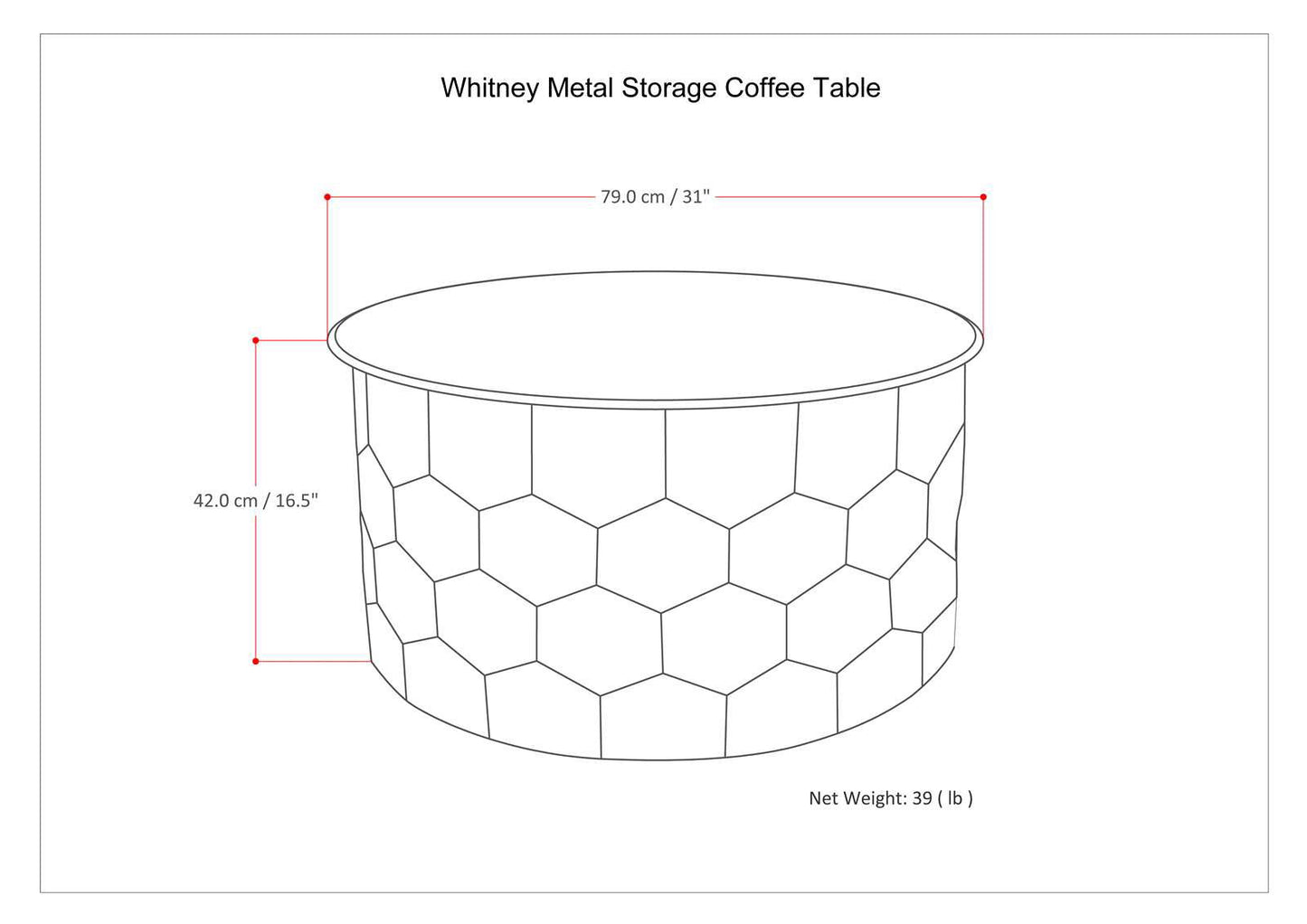 - Dimensions: 31" W x 31" D x 16.5" H