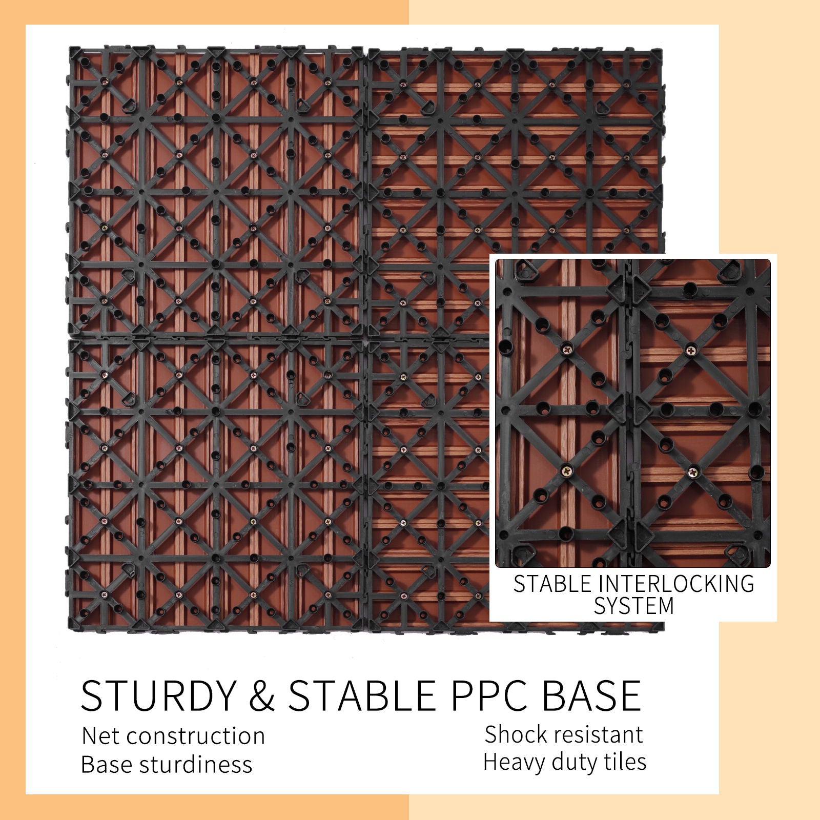 Wood Plastic Composite Deck Tiles (Set of 20), Sustainable Composite Decking Resist Rust, Water, Weather, Easy To Diy & Maintain, Ideal For Patios, Balconies, Rooftops - Mahogany