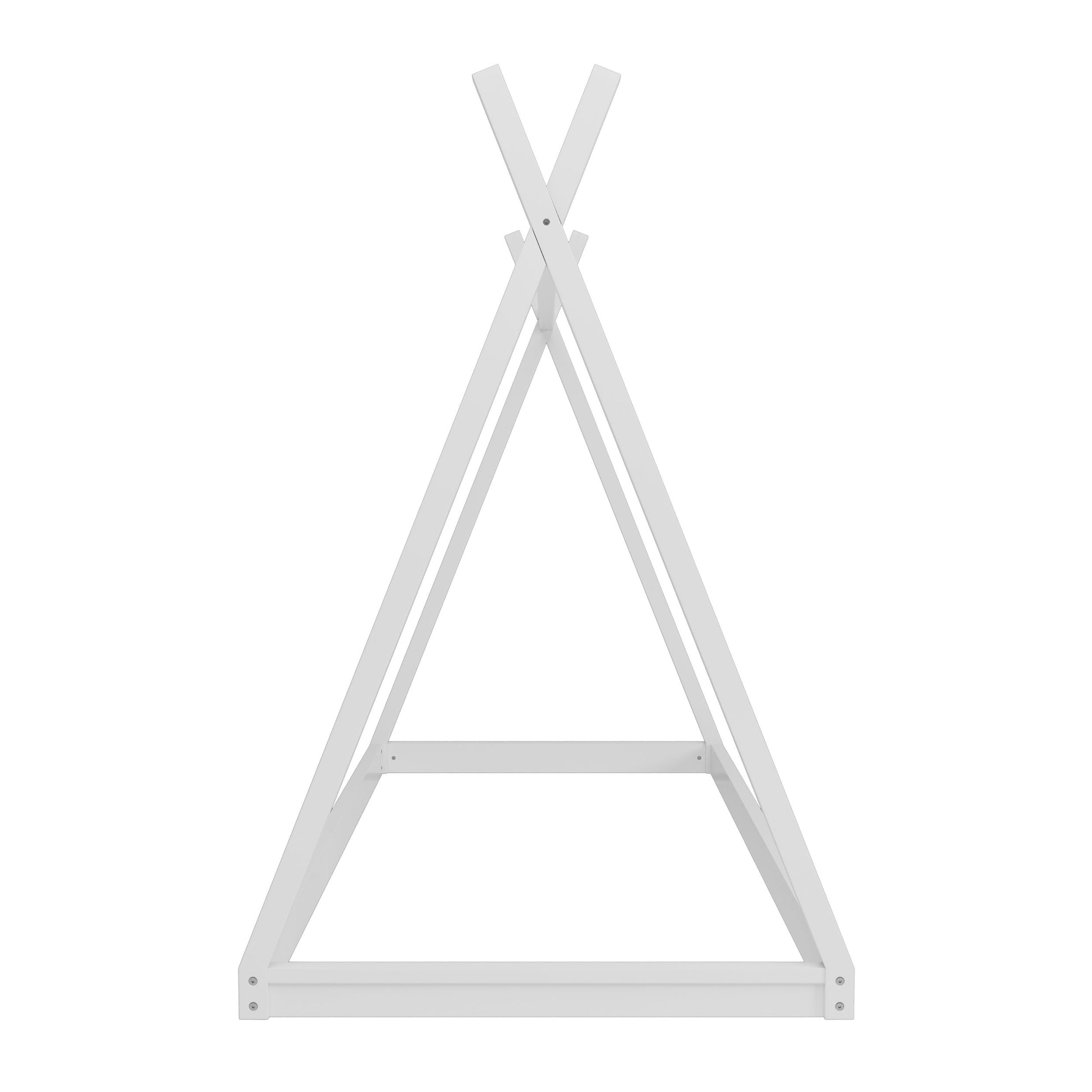 Wood Twin Size Tent Bed For Kids, Montessori Style Low - Floor Bed, House-Shape Tent Bed Frame For Boys Girls Teens, Without Slats - White