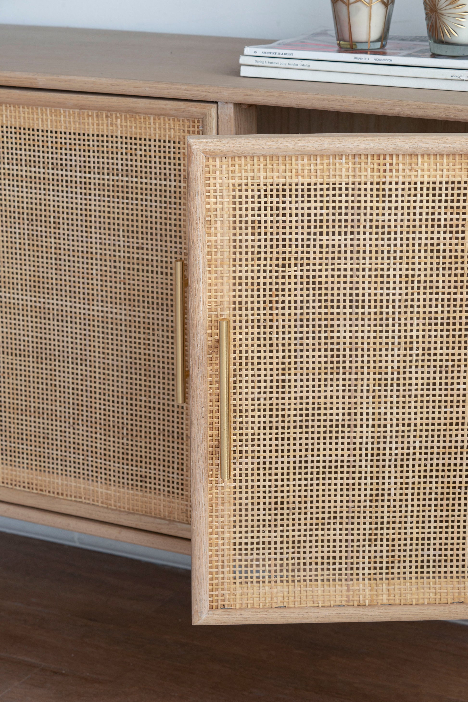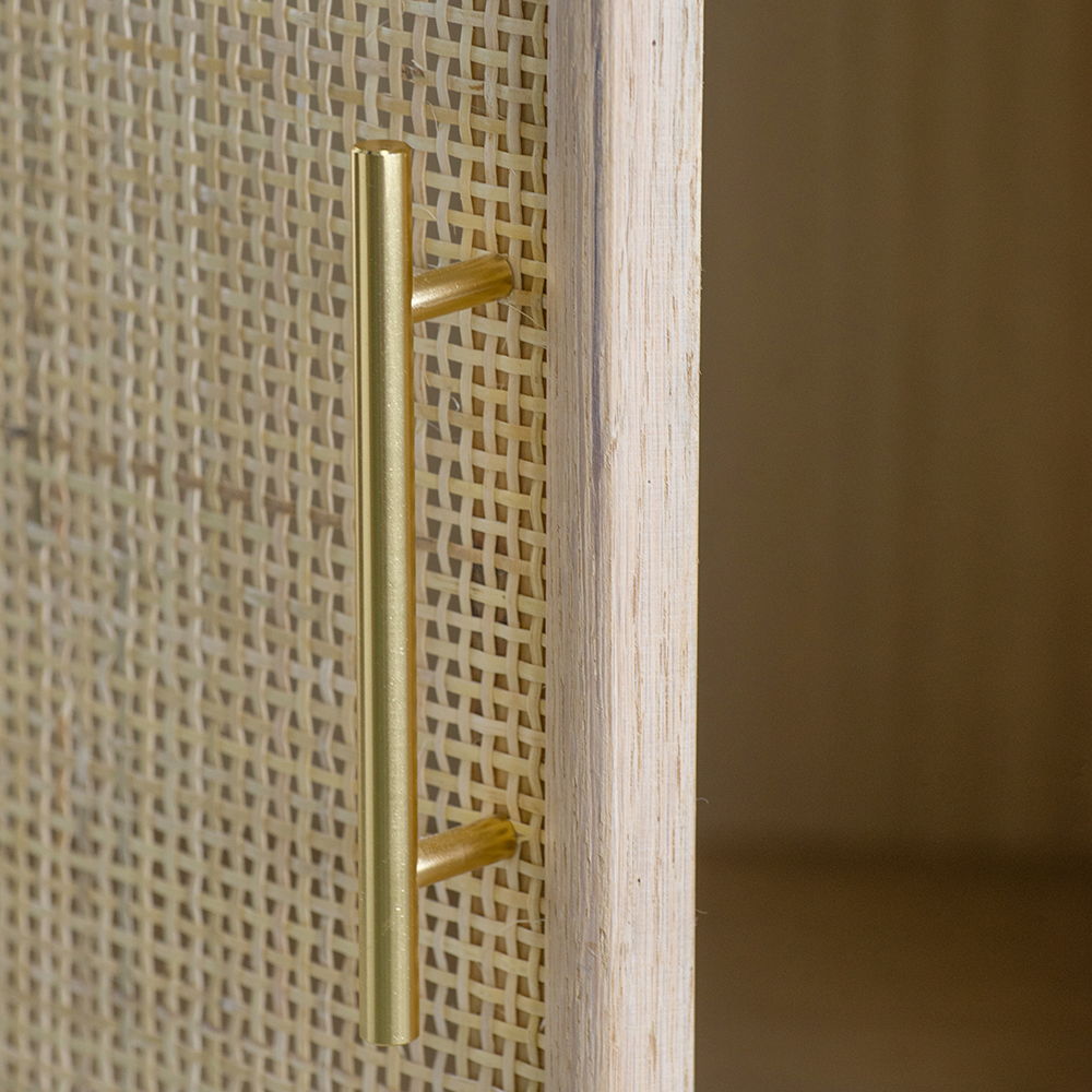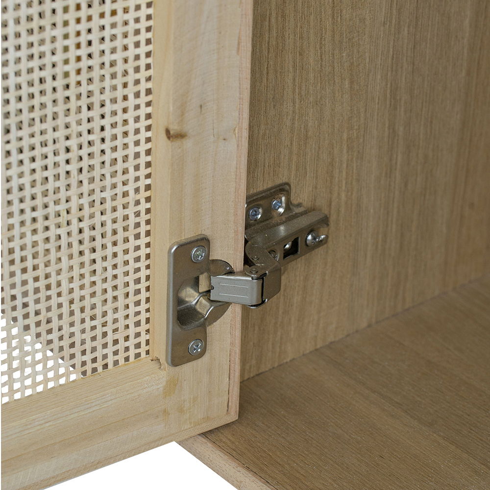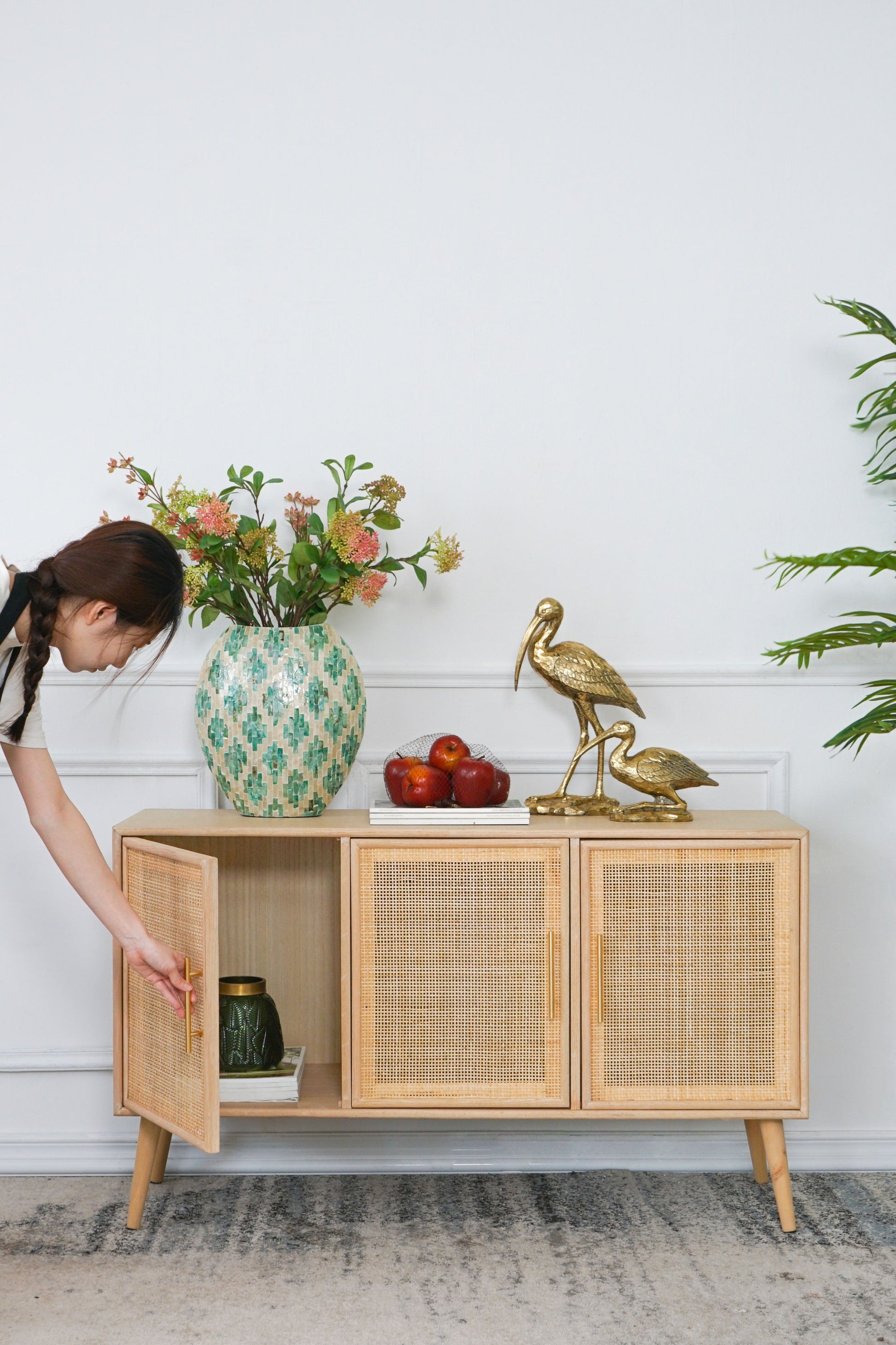 - Distinctive Design: Features a natural brown finish, four sturdy legs, and three rattan doors, adding a touch of unique style to your space.