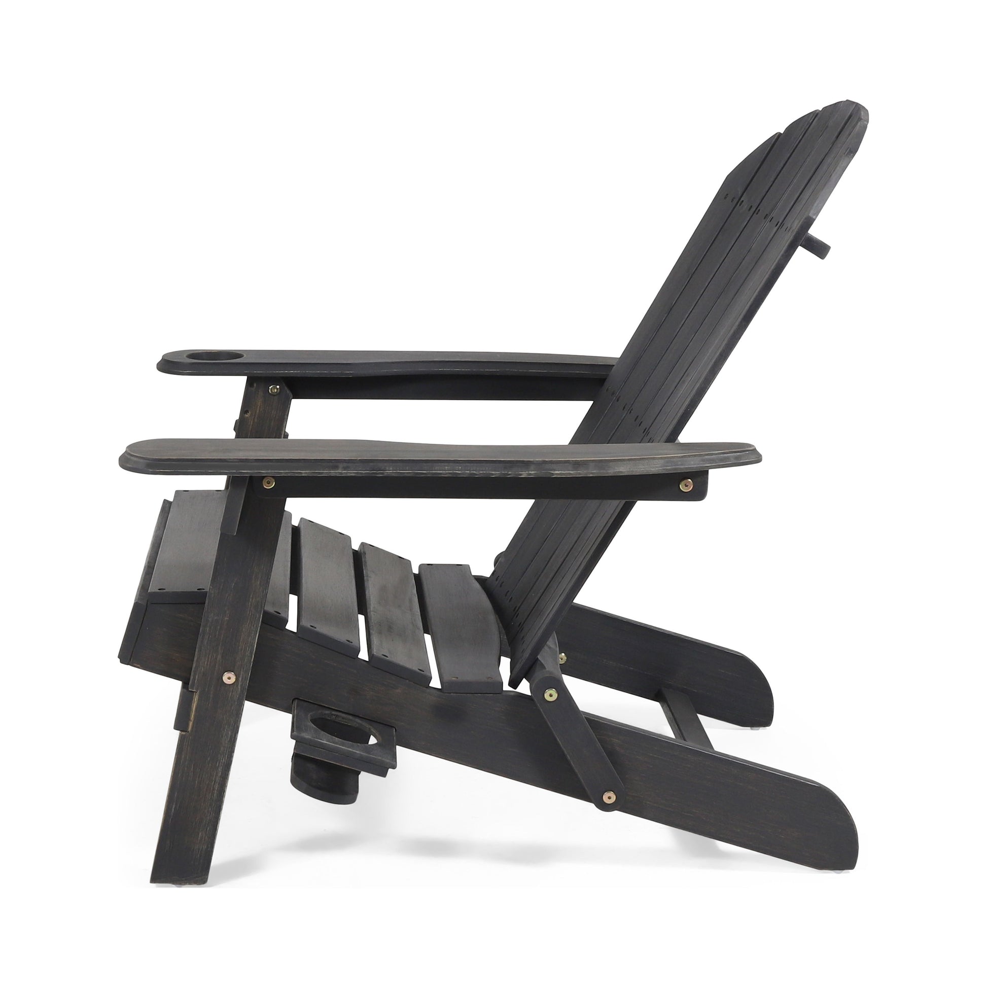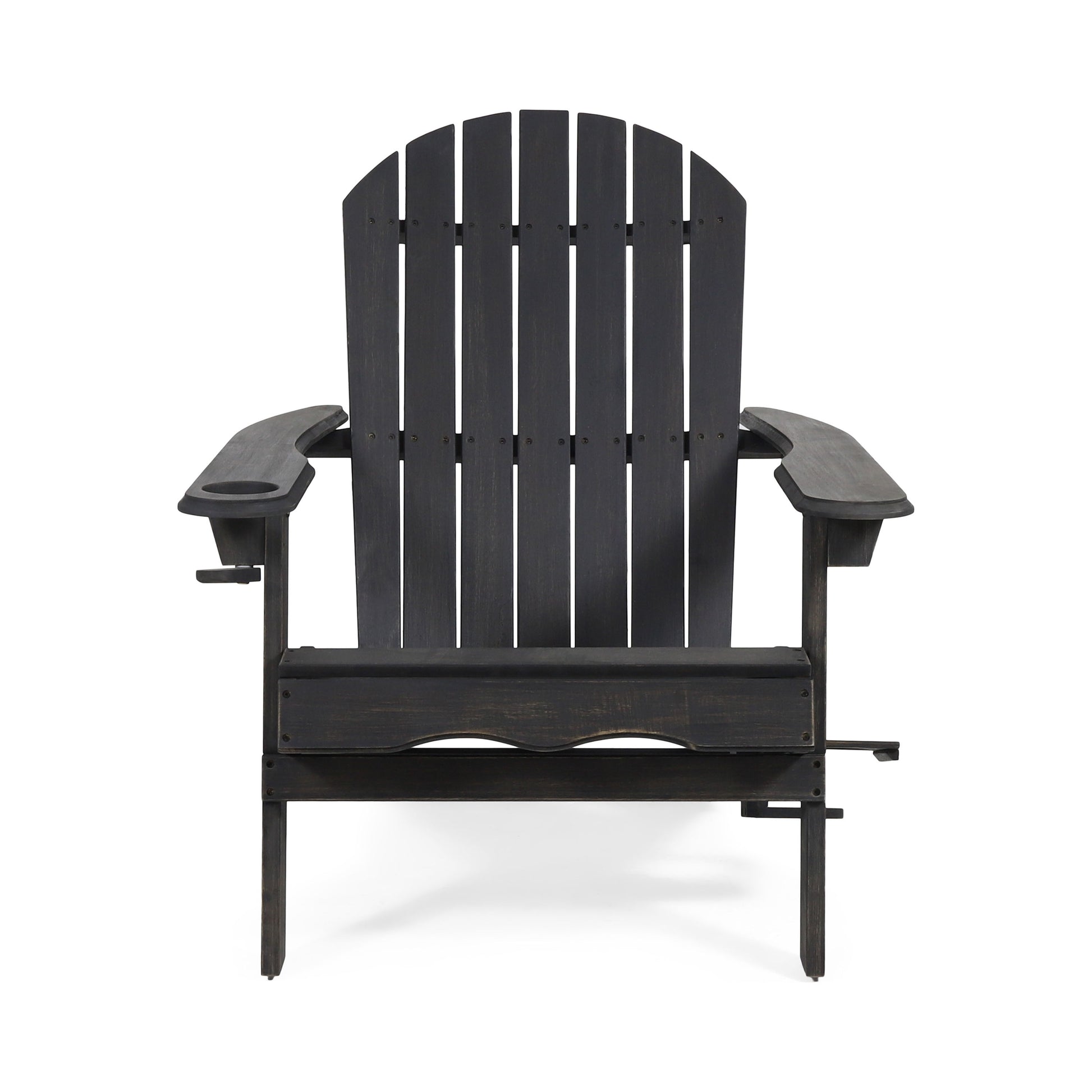 Zenithia - Outdoor Foldable Adirondack Chair With 2 Cup Holders - Dark Gray